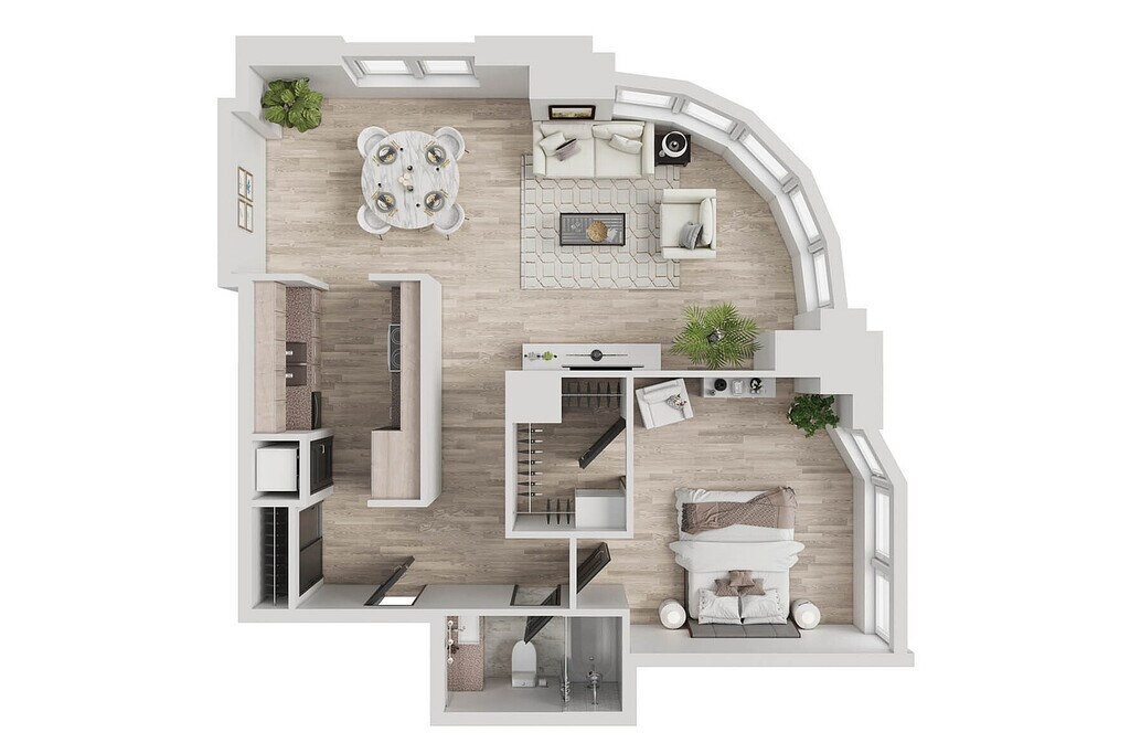 1 Dormitorio, 1 Baño, 895 pies²Disponible AhoraGalería del Modelo