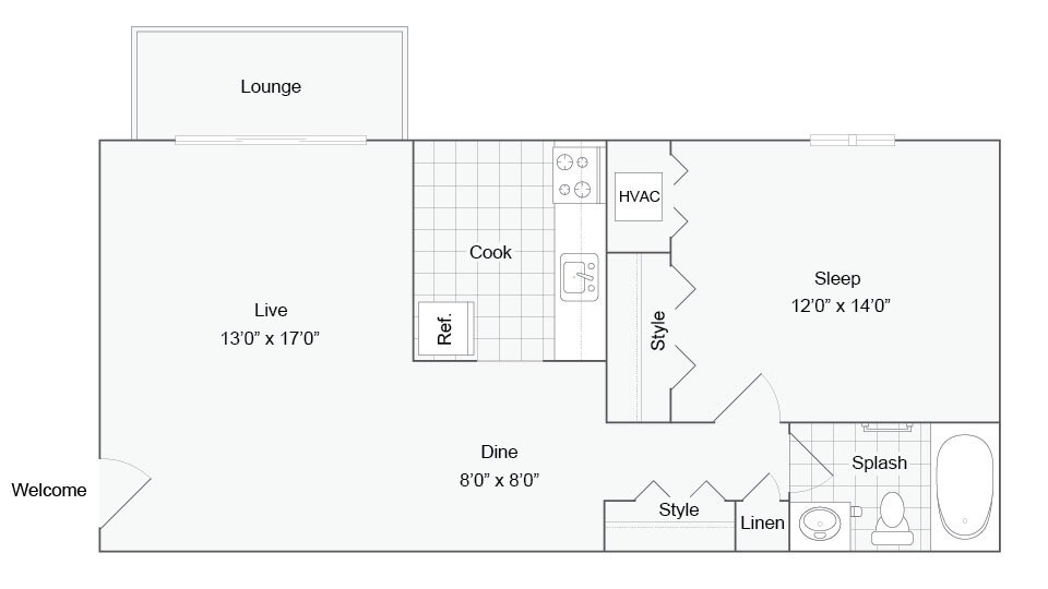 1 Dormitorio, 1 Baño, 650 pies²Disponible AhoraGalería del Modelo