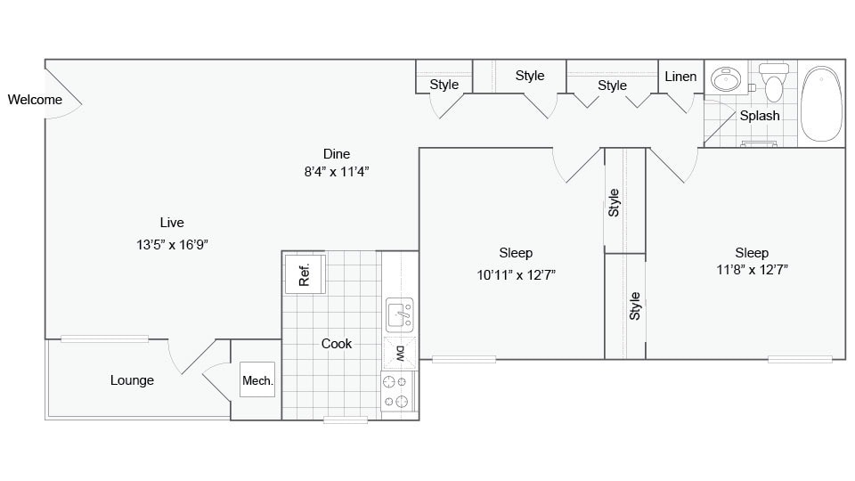 2 Dormitorios, 1 Baño, 930 pies²Disponible AhoraEl más grandeEsta opción tiene las unidades más grandes para este modeloGalería del Modelo