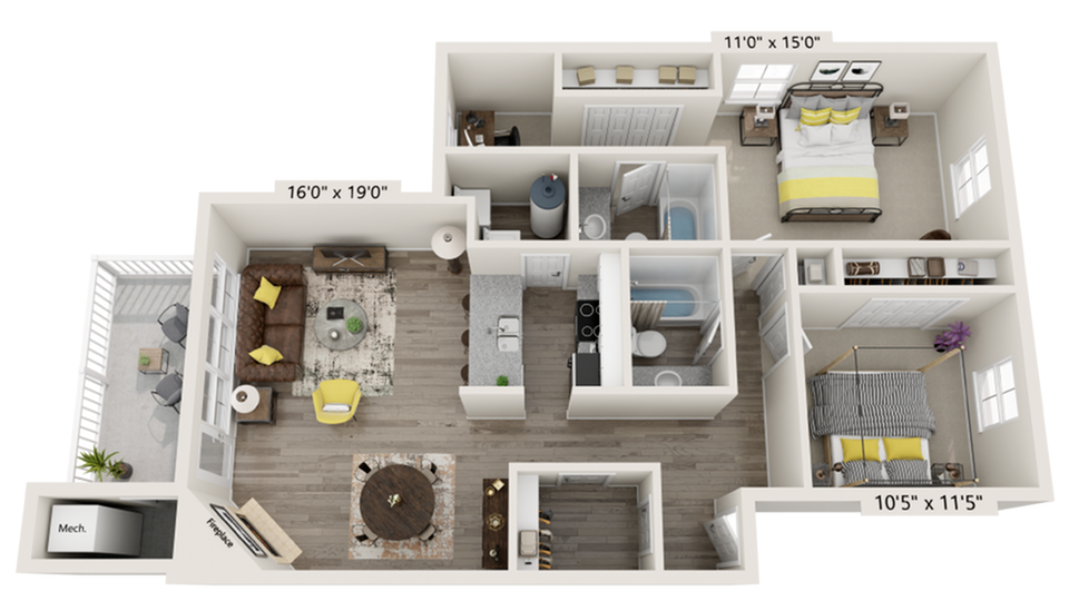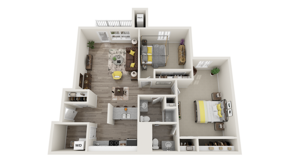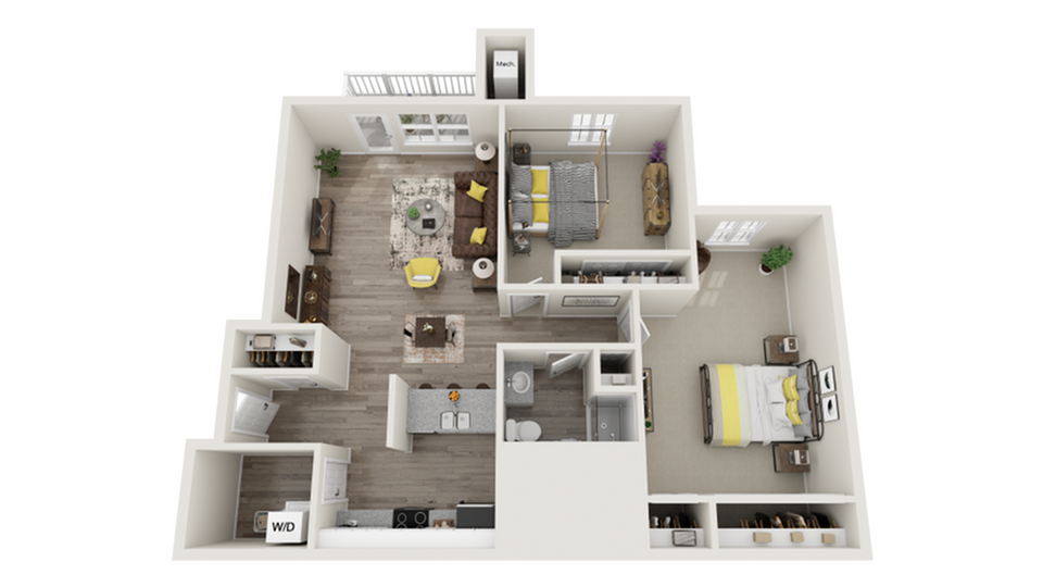 2 Dormitorios, 1 Baño, 1010 pies²Disponible AhoraGalería del Modelo