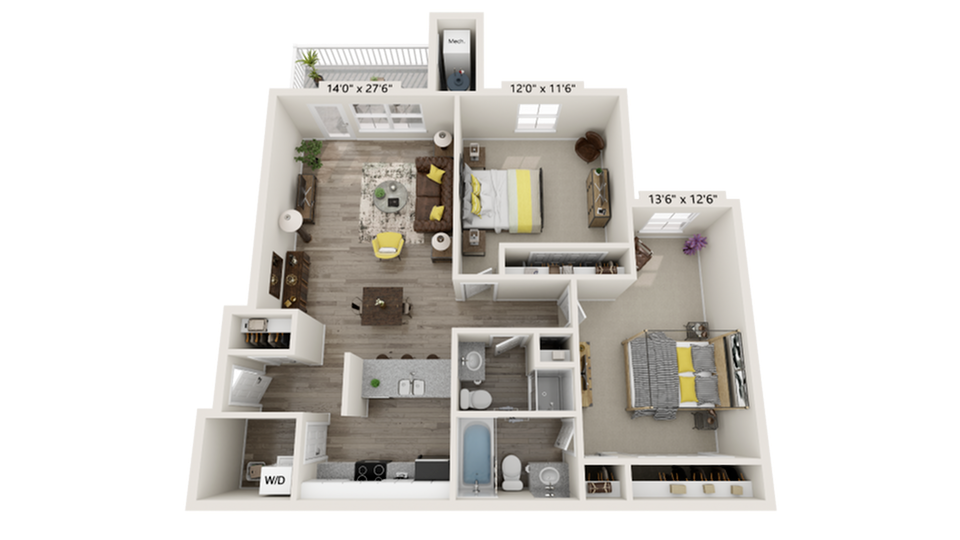 2 Dormitorios, 2 Baños, 1240 pies²Disponible AhoraGalería del Modelo