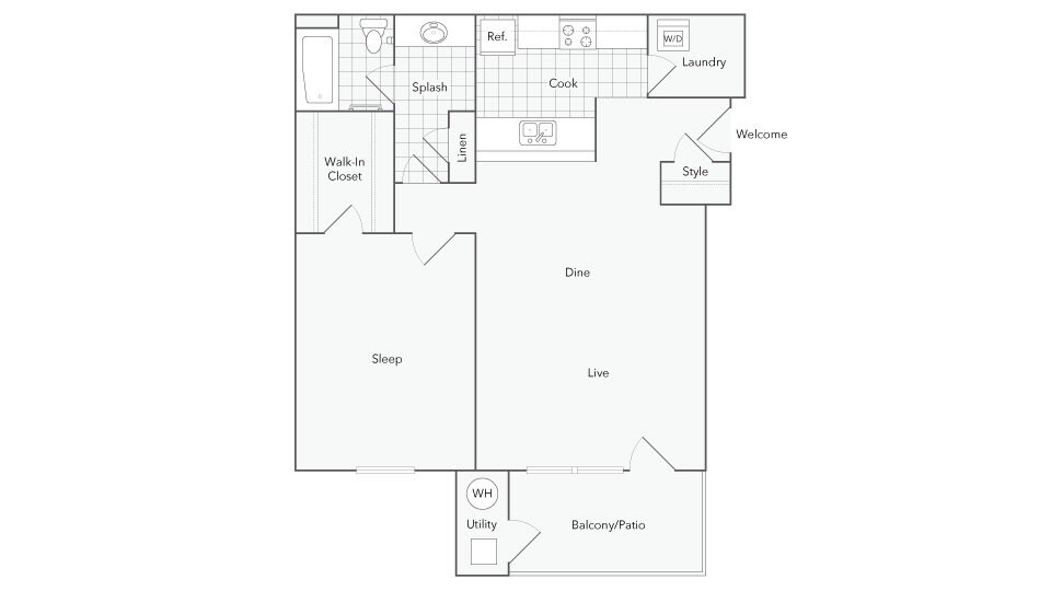 1 Dormitorio, 1 Baño, 865 pies²Disponible January 17, 2026Galería del Modelo
