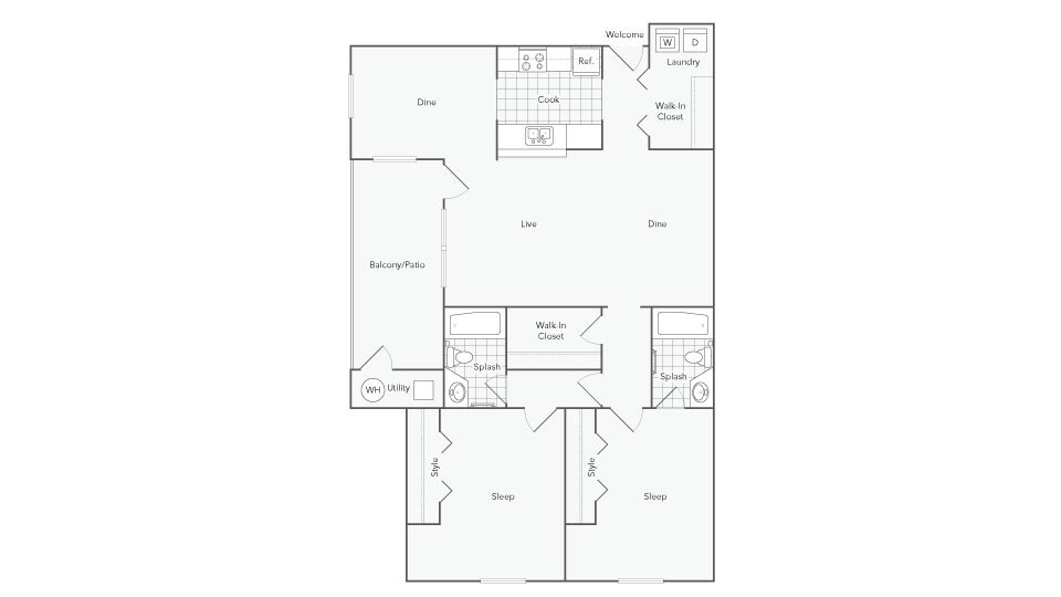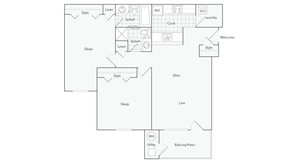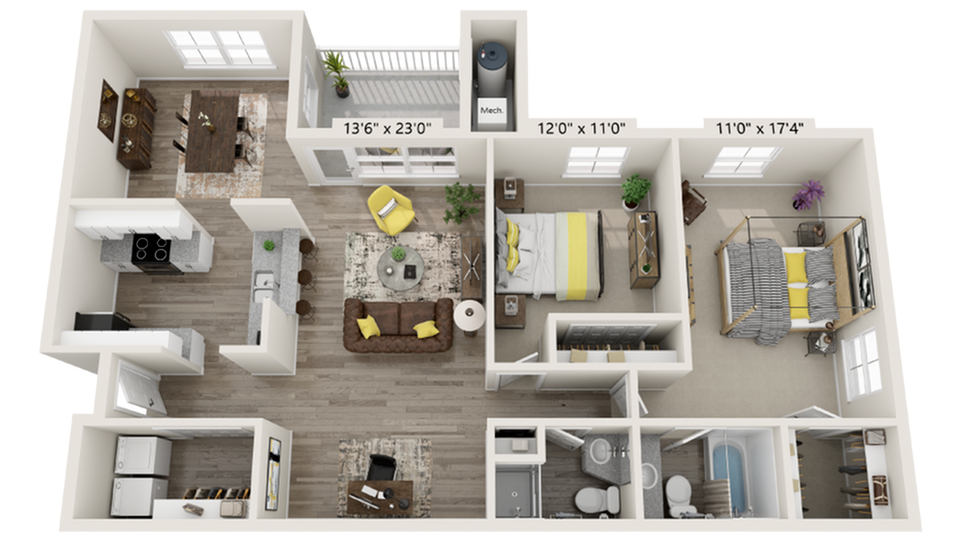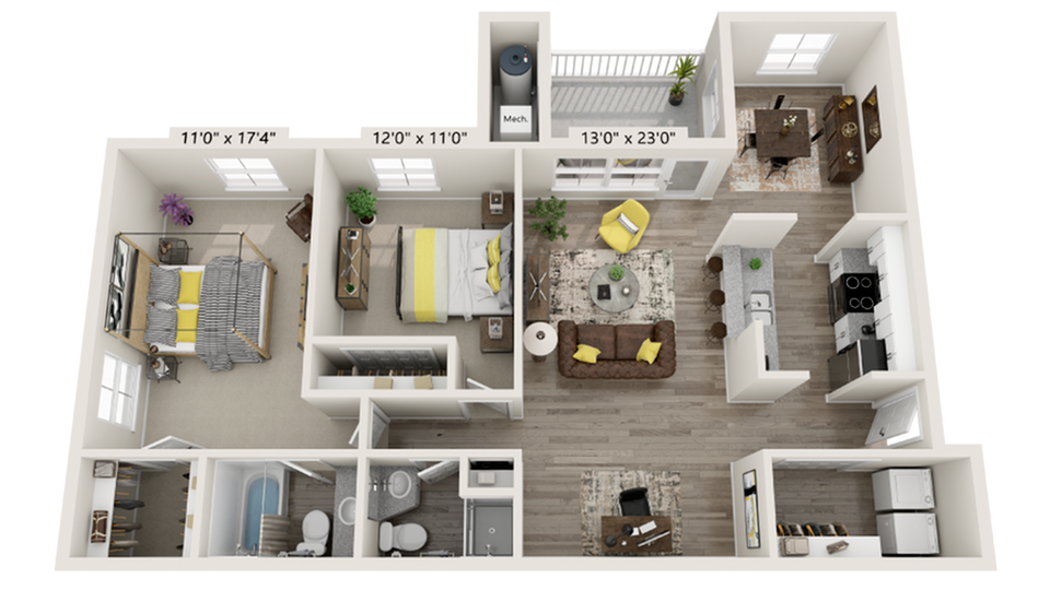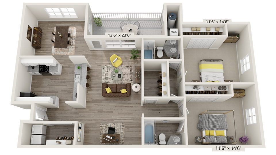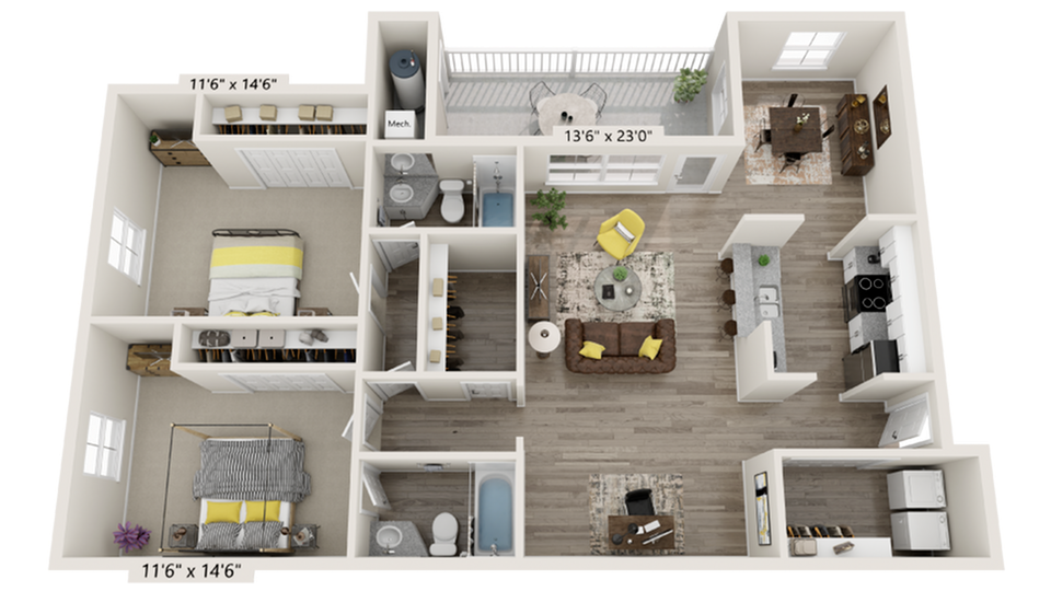 2 Dormitorios, 2 Baños, 1150 pies²Disponible AhoraGalería del Modelo