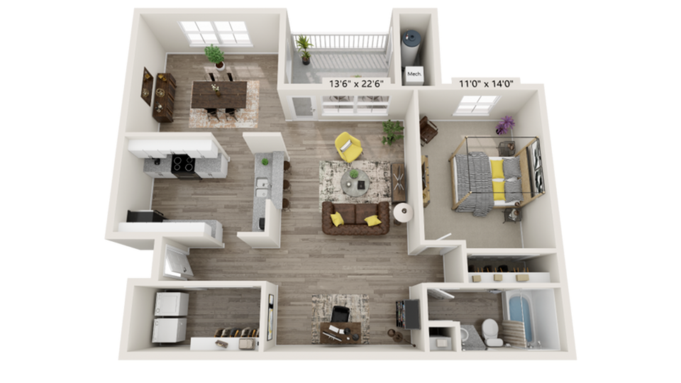 1 Dormitorio, 1 Baño, 1000 pies²Disponible Oct 17Galería del Modelo