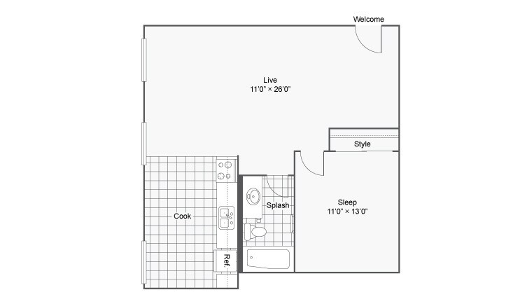 1 Dormitorio, 1 Baño, 652 pies²Disponible Nov 25Galería del Modelo