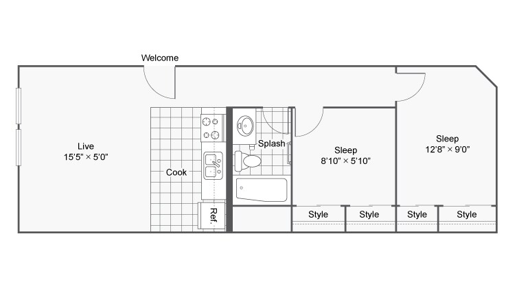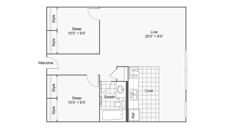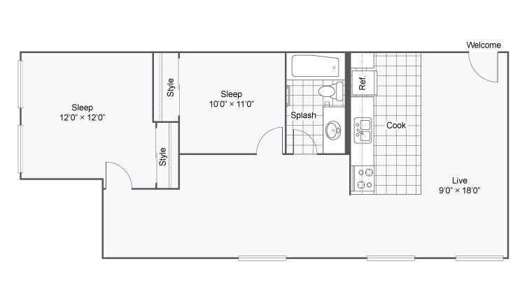 2 Dormitorios, 1 Baño, 783 pies²Disponible AhoraGalería del Modelo