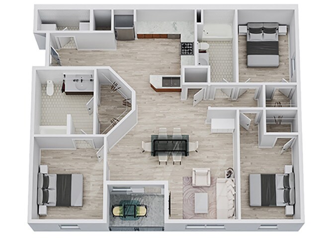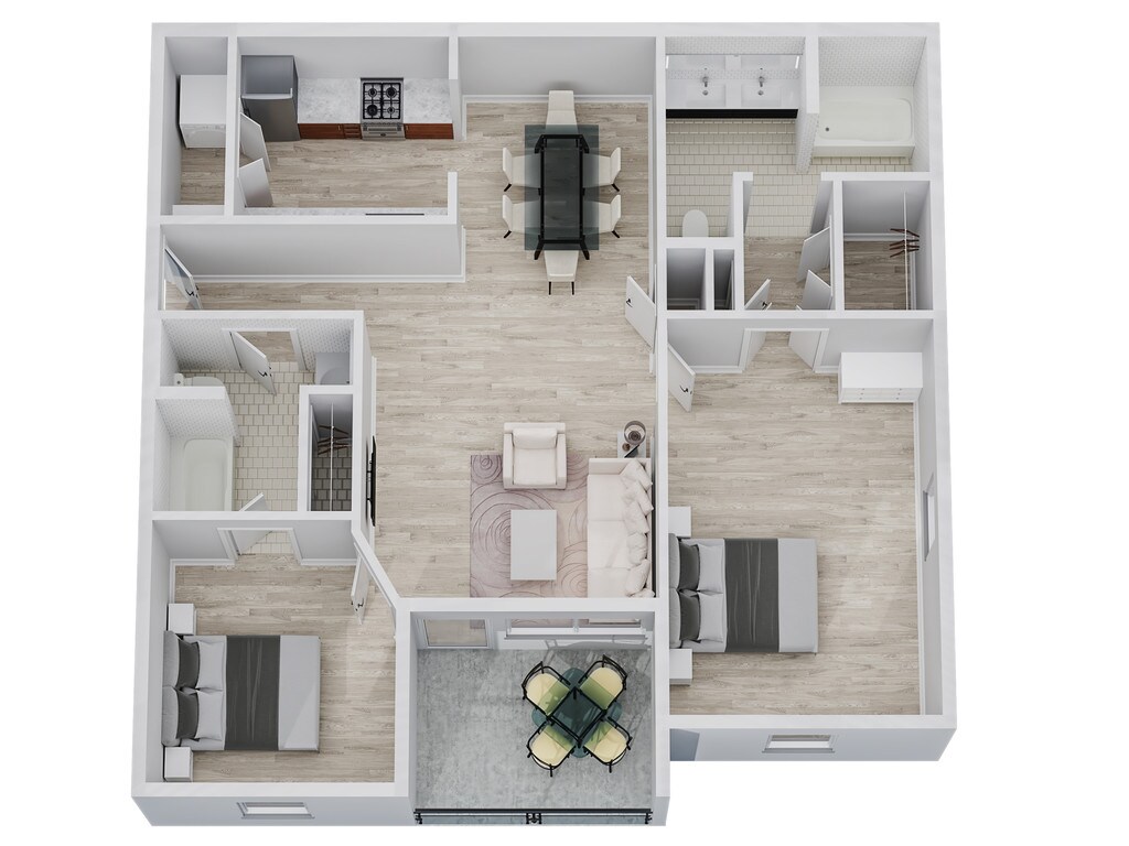 Three-Bedroom - Plano 8 Unidad de apartamento: 1022-101Modelo de apartamento: Three-Bedroom3 Dormitorios, 2 Baños, 1371 sq ftDisponible December 24, 2025