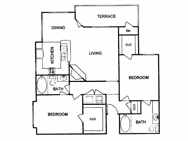 Modelo de apartamento: A2Desde $1,3751 Dormitorio, 1 Baño, 820 sq ftDisponible Ahora![]()