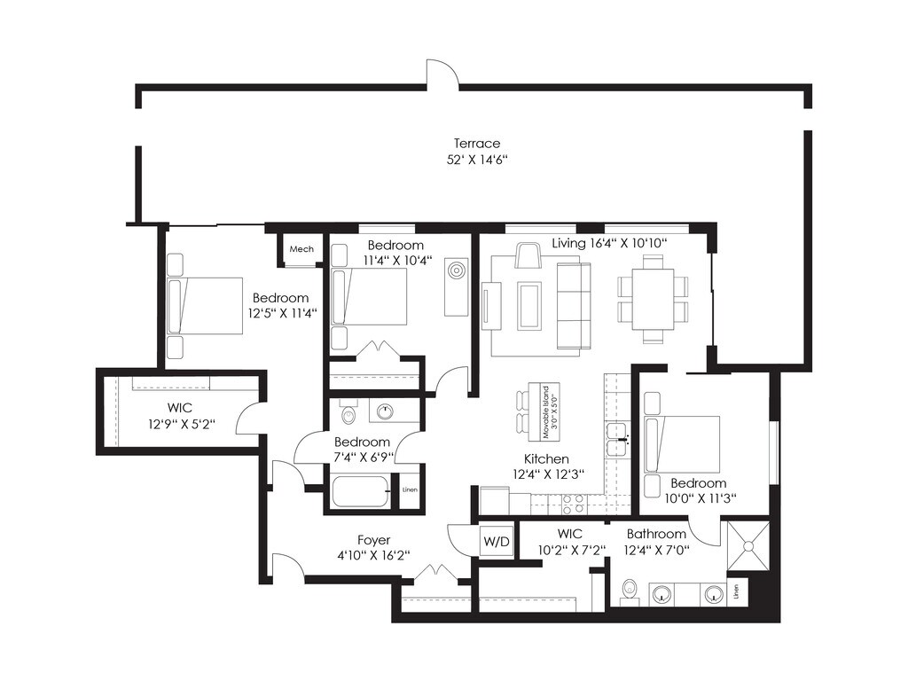 Modelo de apartamento: A1Llame para Precios1 Dormitorio, 1 Baño, 684 sq ftNo Disponible![]()