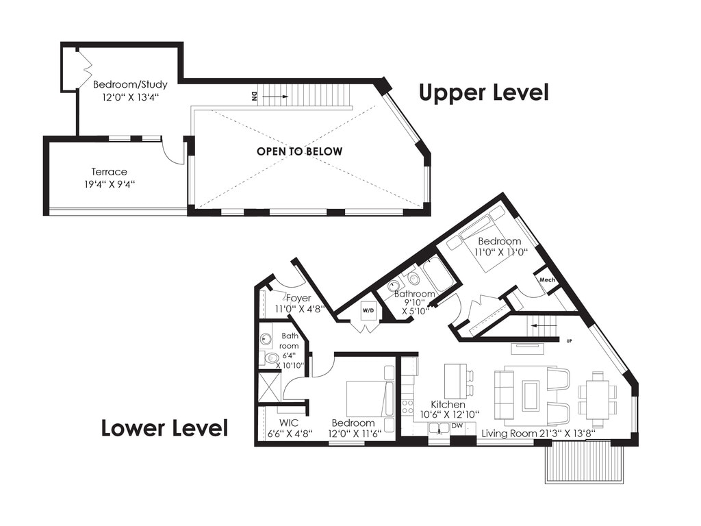 1 Dormitorio, 1 Baño, 690 pies²Galería del Modelo