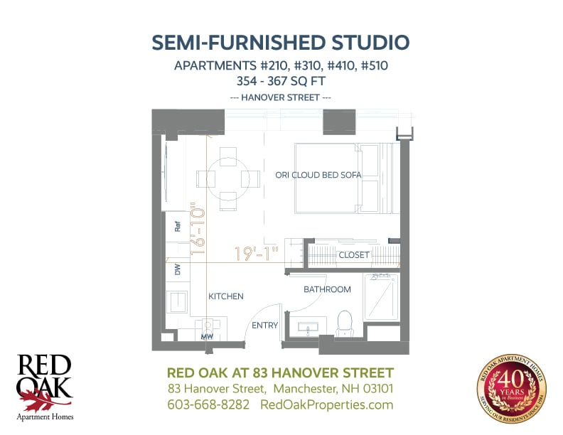ALL UTILITIES ARE INCLUDED IN THE RENT at Red Oak at 83 Hanover Street. This non-smoking community has 40 brand new apartment homes with upscale amenities. Red Oak has renovated the former Odd Fellows Building at 83 Hanover Street in downtown Manchester. These cat-friendly studio, semi-furnished studio, and one bedroom apartments are in the center of the Arts and Theatre District! Located in the heart of the city of Manchester, the Palace Theatre is directly across the street and the Rex Theatre is just steps away. Restaurants, shops and public transportation are just steps away! Electricity, heat, air conditioning, in-home WiFi, water & sewer, trash removal are all included in the rent.