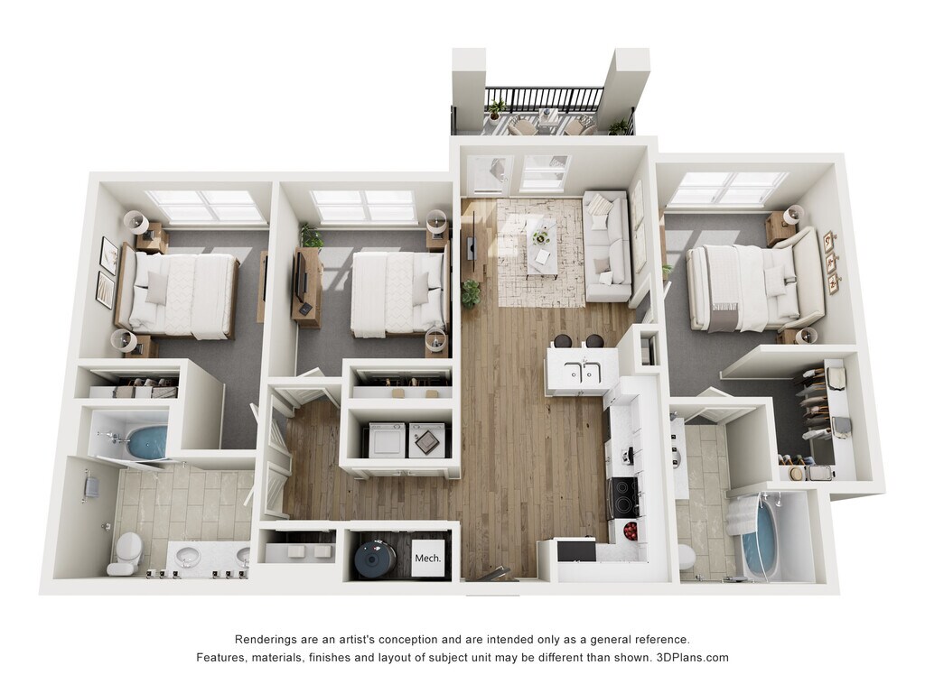 Modelo de apartamento: CDesde $1,6603 Dormitorios, 2 Baños, 1191 sq ftDisponible Ahora![]()
