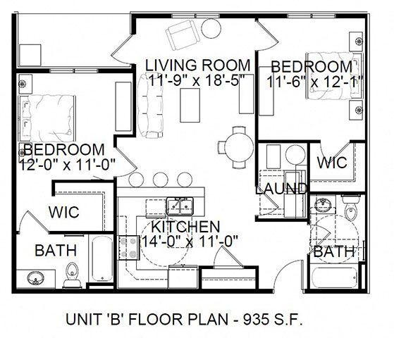 One Bedroom x One Bathroom - Plano 12 ![]()