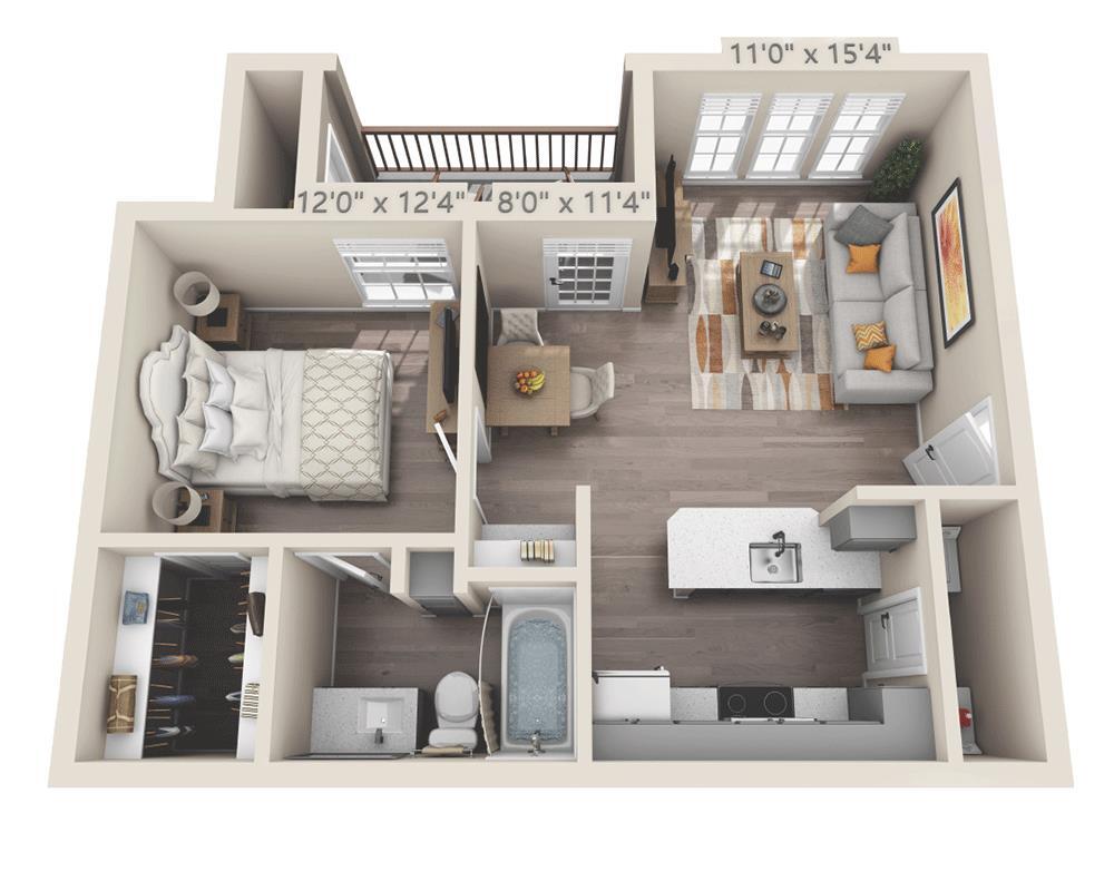 1 Dormitorio, 1 Baño, 774 pies²Precio Mensual TotalDisponible AhoraGalería del Modelo