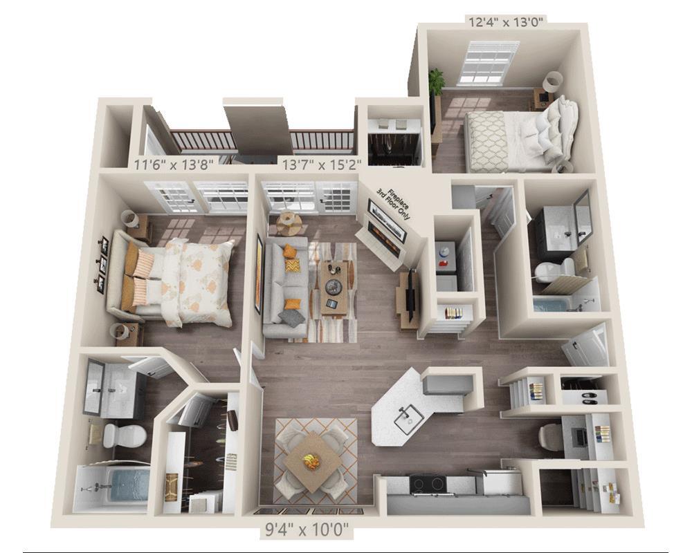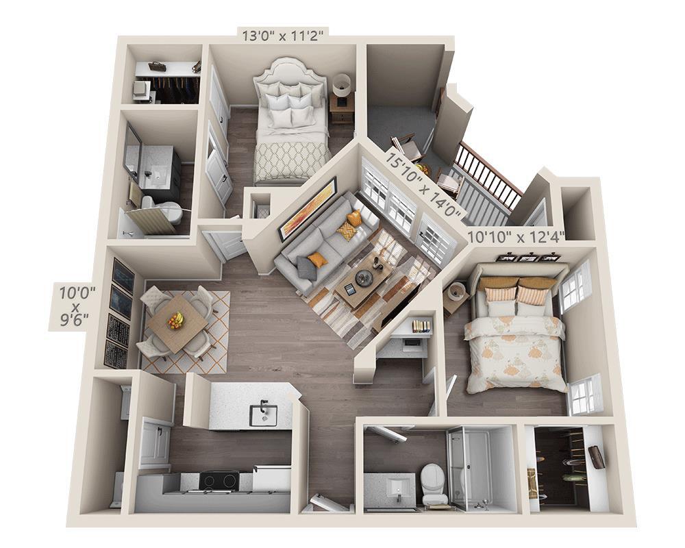 Unidad: 1512 - Imagen 4 Los planos son representaciones artísticas. Todas las dimensiones son aproximadas. El producto y las especificaciones reales pueden variar en tamaño o detalle. No todas las características están disponibles en cada vivienda en alquiler. Por favor, consulta con un representante para obtener más detalles.