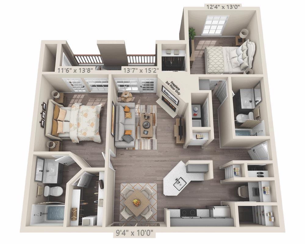 Unidad: 1321 - Imagen 4 Los planos son representaciones artísticas. Todas las dimensiones son aproximadas. El producto y las especificaciones reales pueden variar en tamaño o detalle. No todas las características están disponibles en cada vivienda en alquiler. Por favor, consulta con un representante para obtener más detalles.