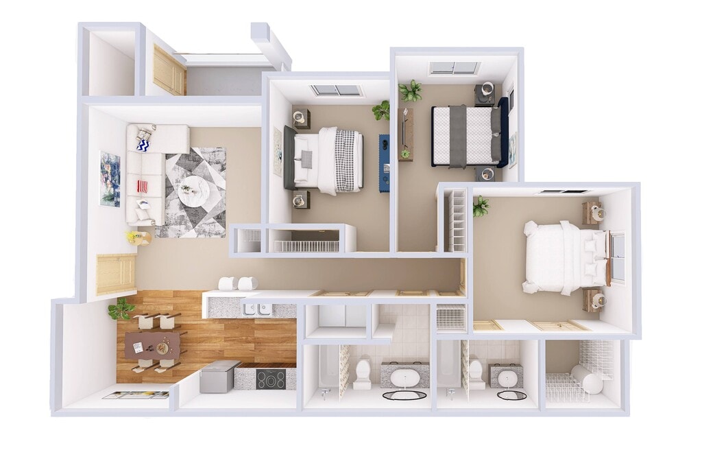Modelo de apartamento: Bear CreekLlame para Precios3 Dormitorios, 2 Baños, 1204 sq ftNo Disponible![]()