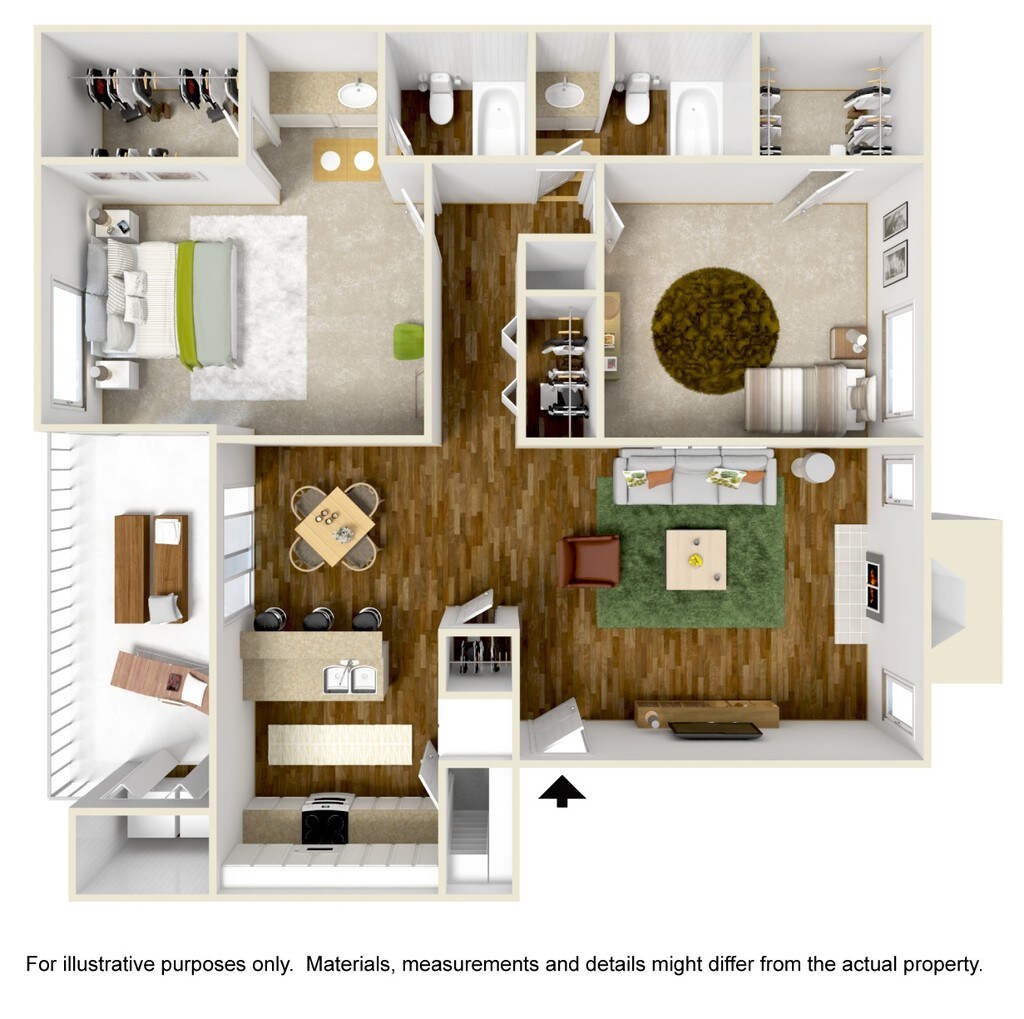 2 Dormitorios, 1 Baño, 865 pies²Disponible AhoraGalería del Modelo