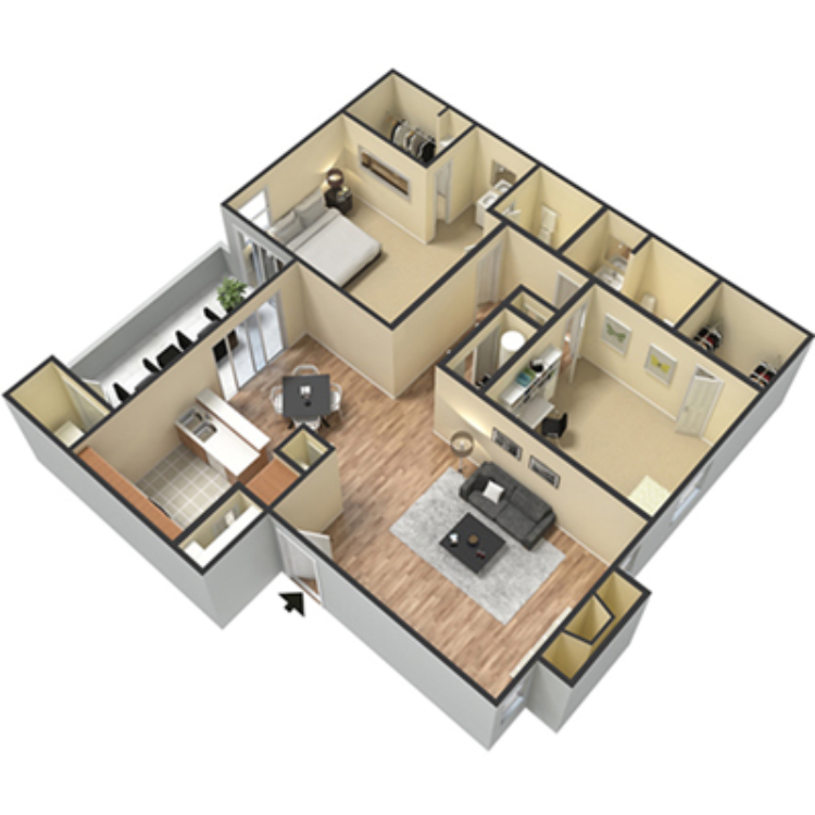 Modelo de apartamento: A32 Dormitorios, 1 Baño, 865 sq ftDisponible Ahora![]()