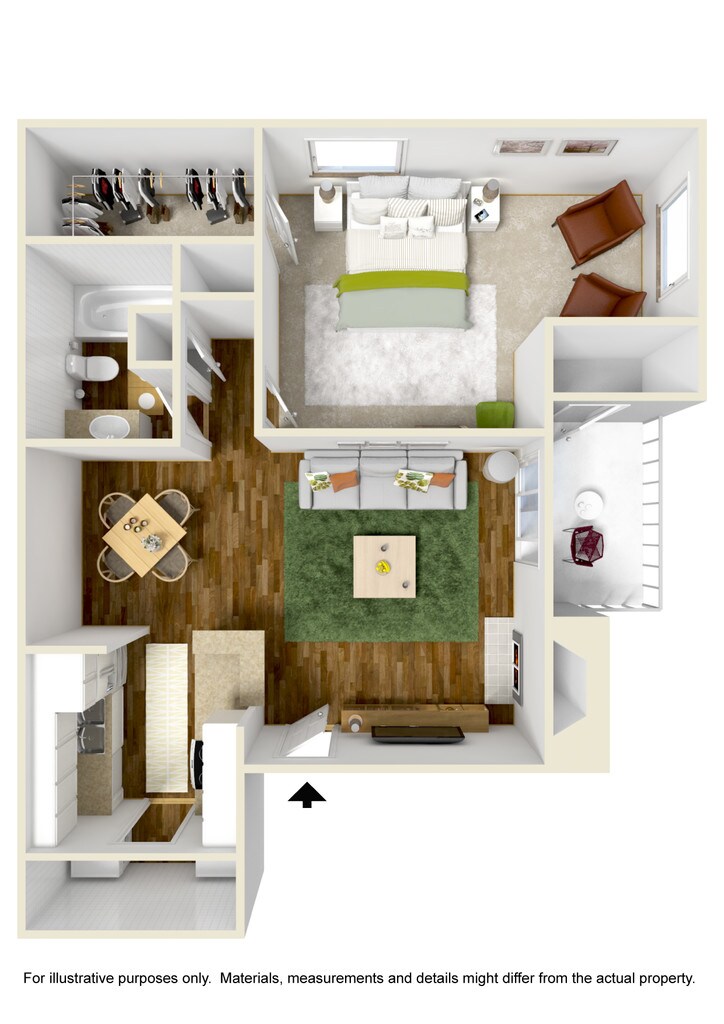1 Dormitorio, 1 Baño, 813 pies²Disponible AhoraGalería del Modelo