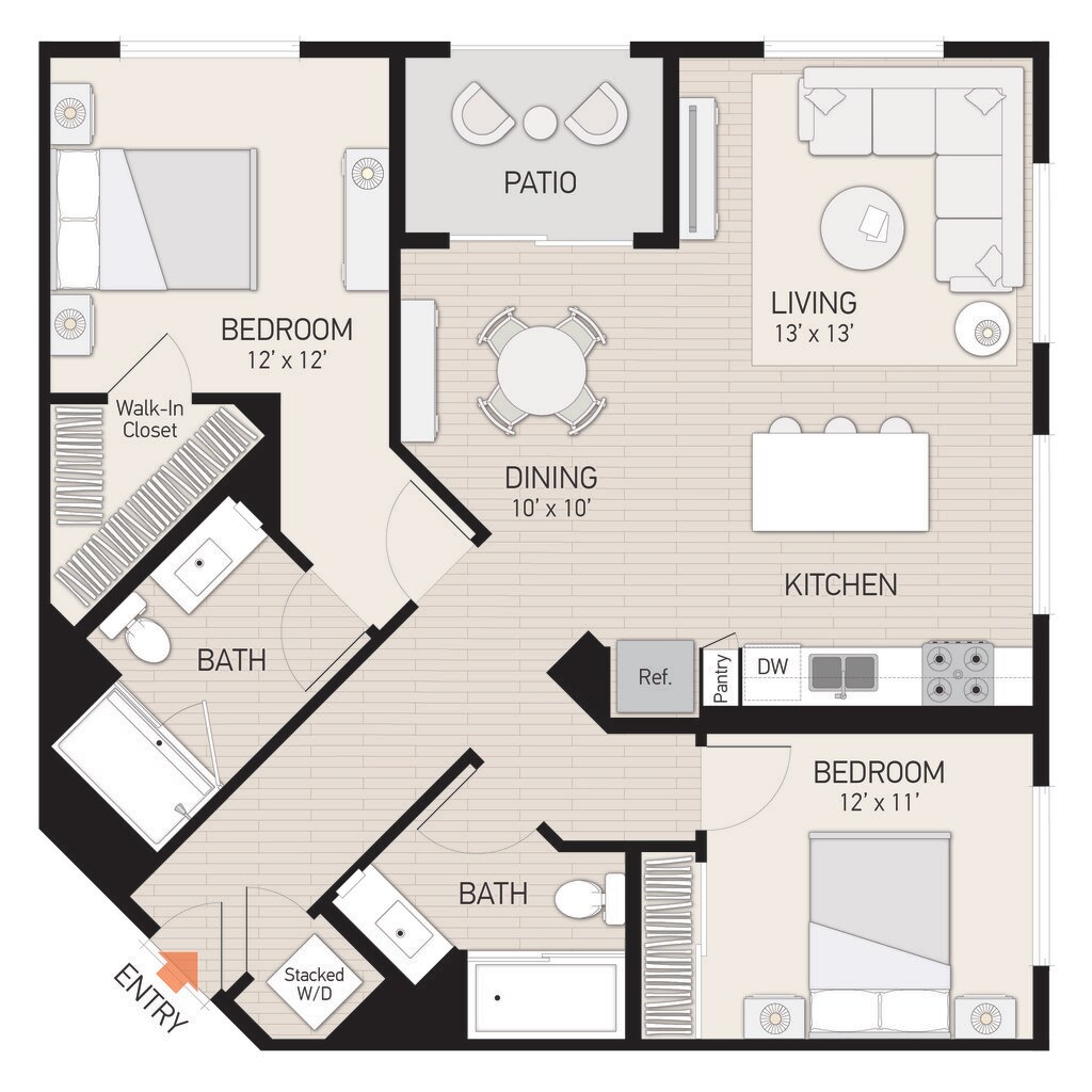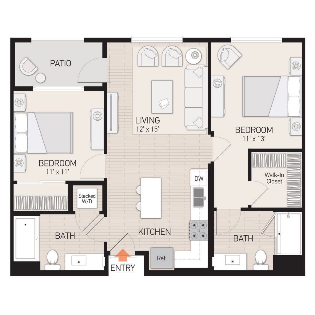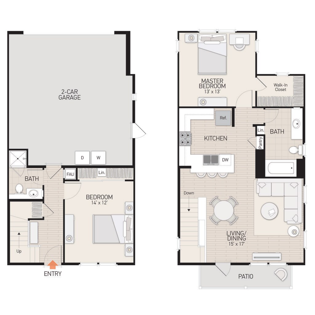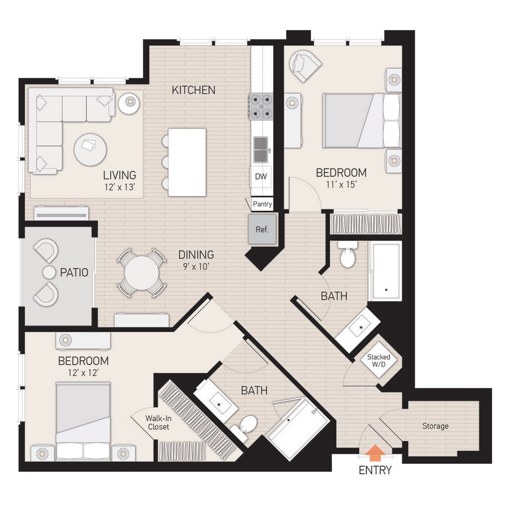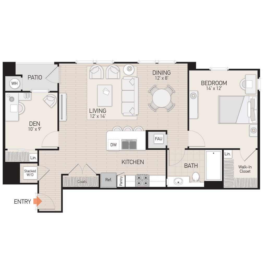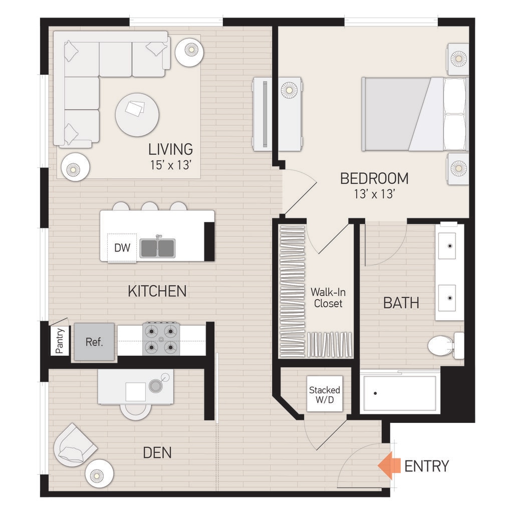 Modelo de apartamento: Plan 29Desde $3,6851 Dormitorio, 1 Baño, 762 sq ftDisponible Ahora![]()