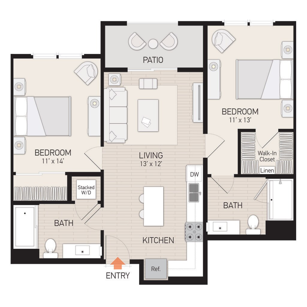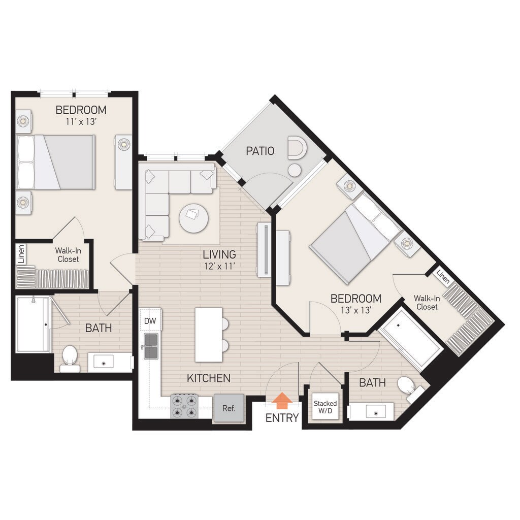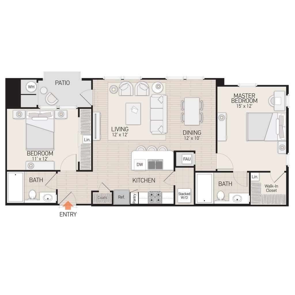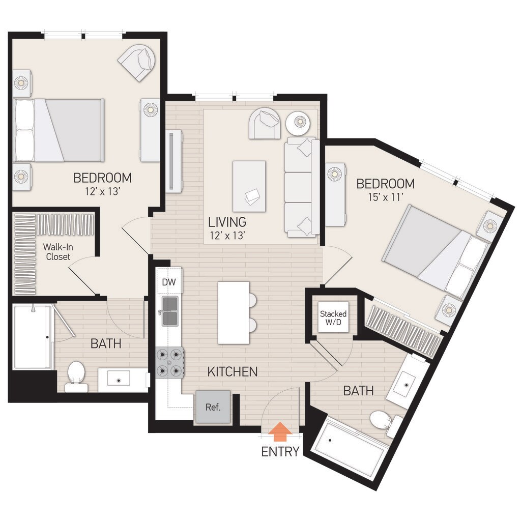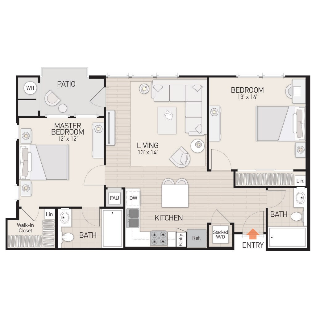 Modelo de apartamento: Plan 29Desde $3,6851 Dormitorio, 1 Baño, 762 sq ftDisponible Ahora![]()