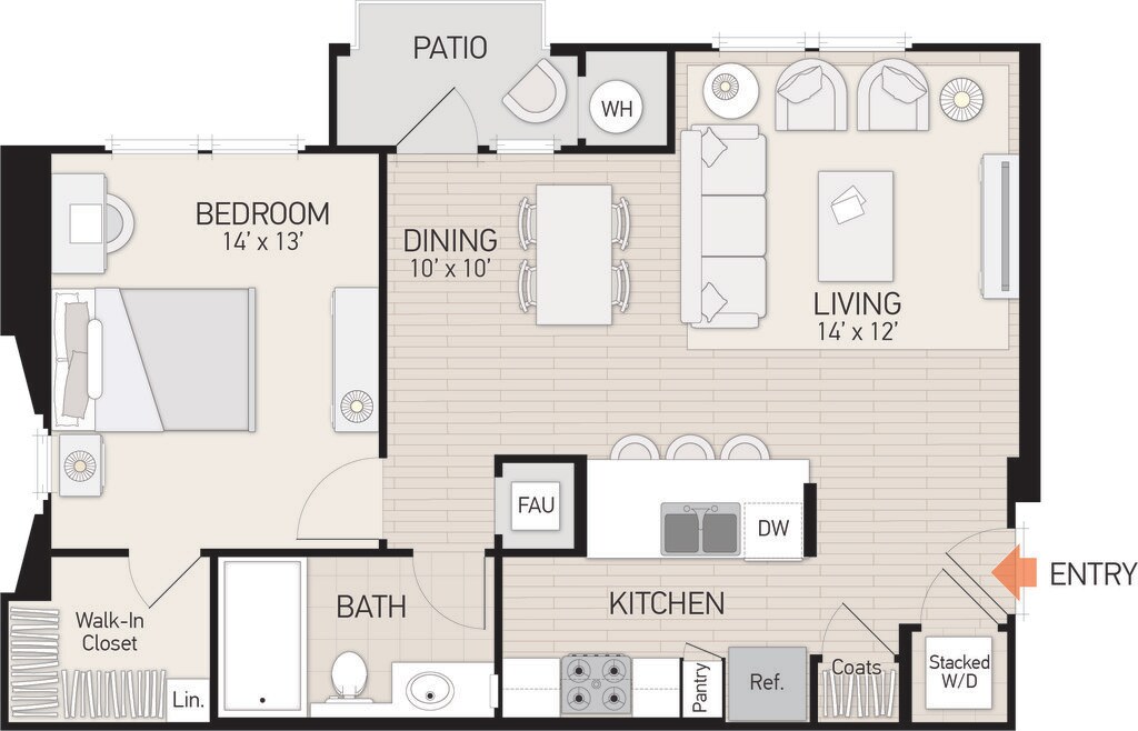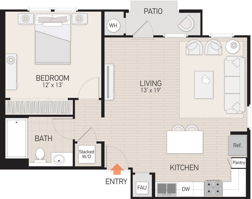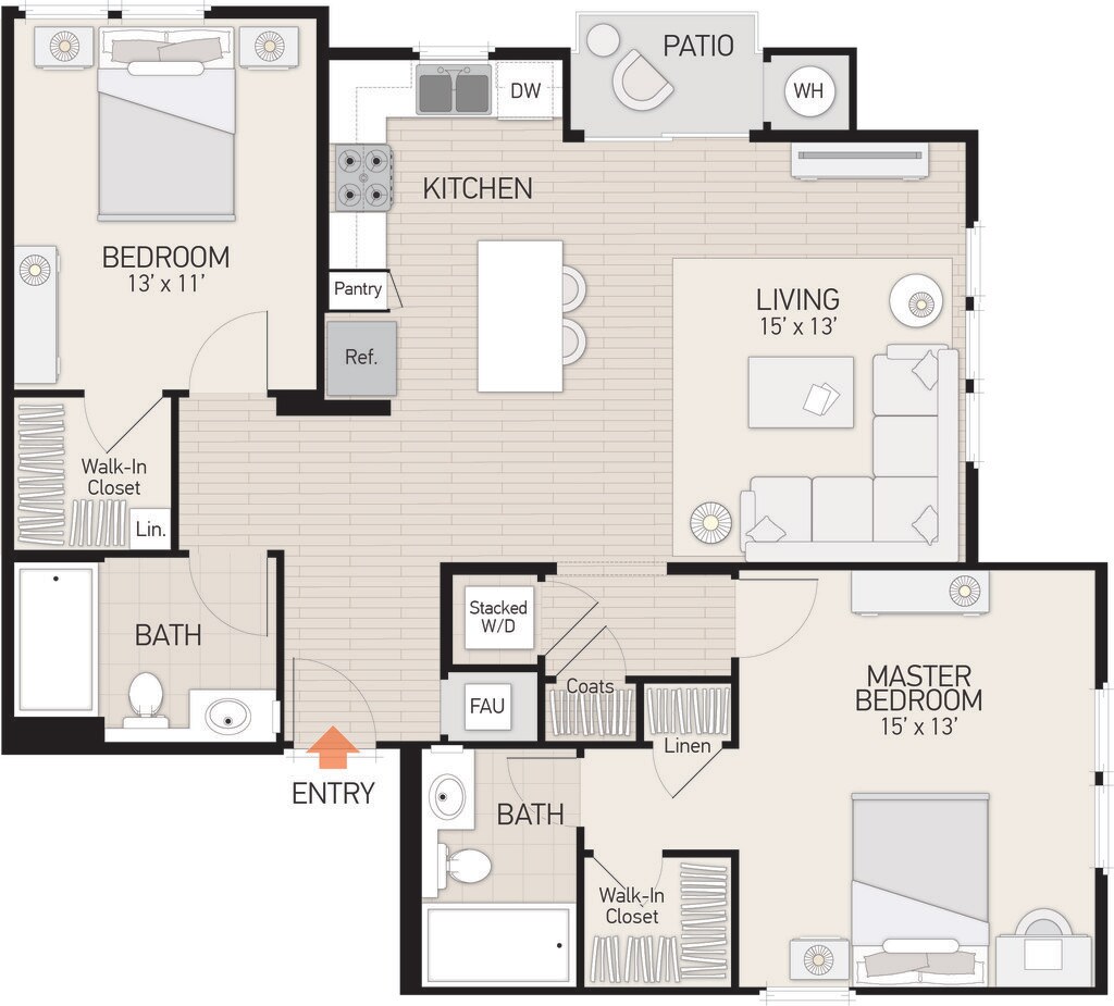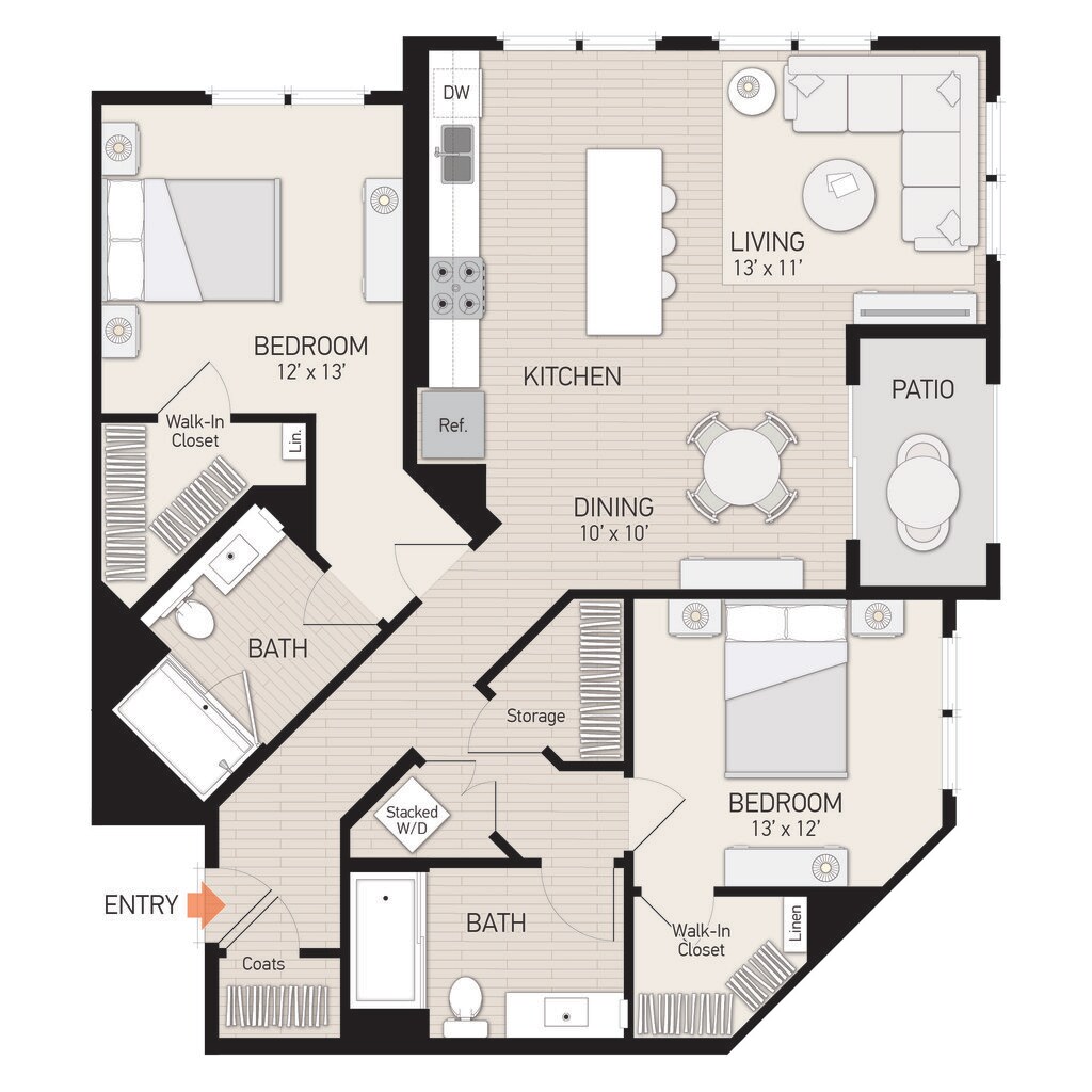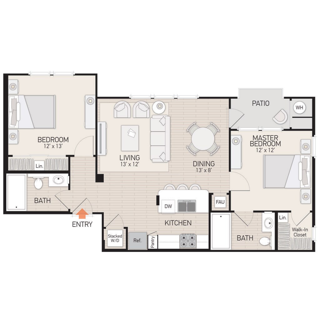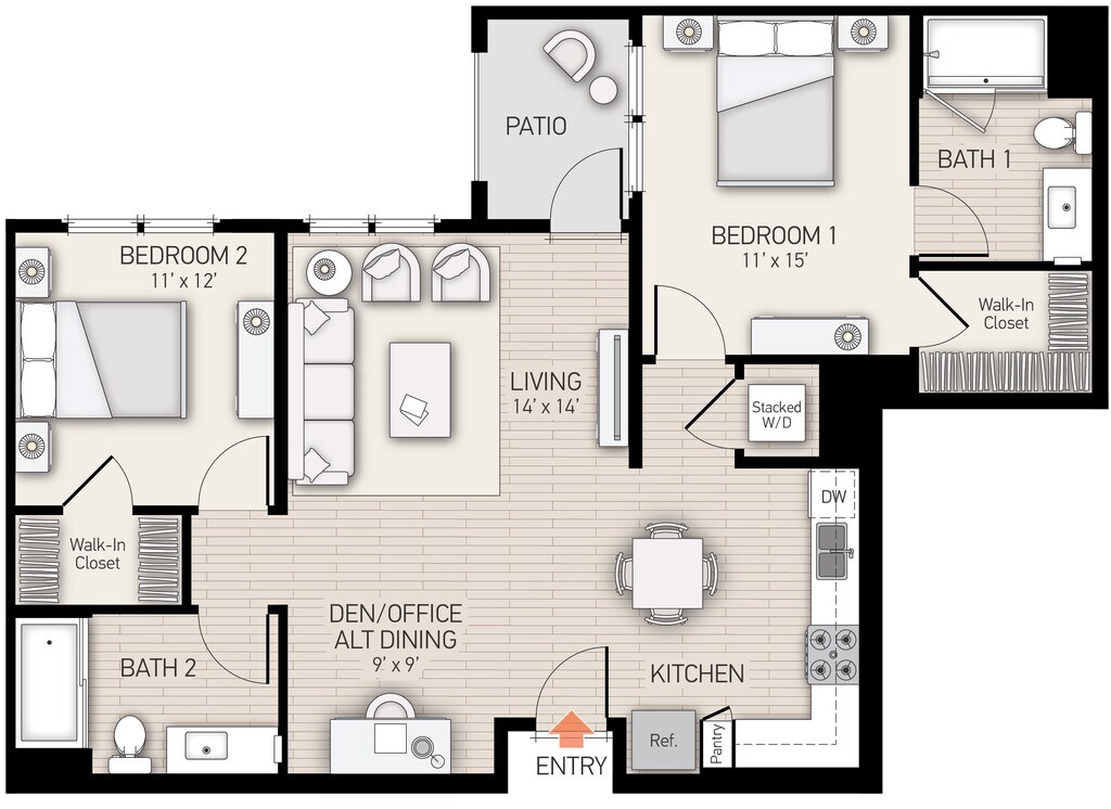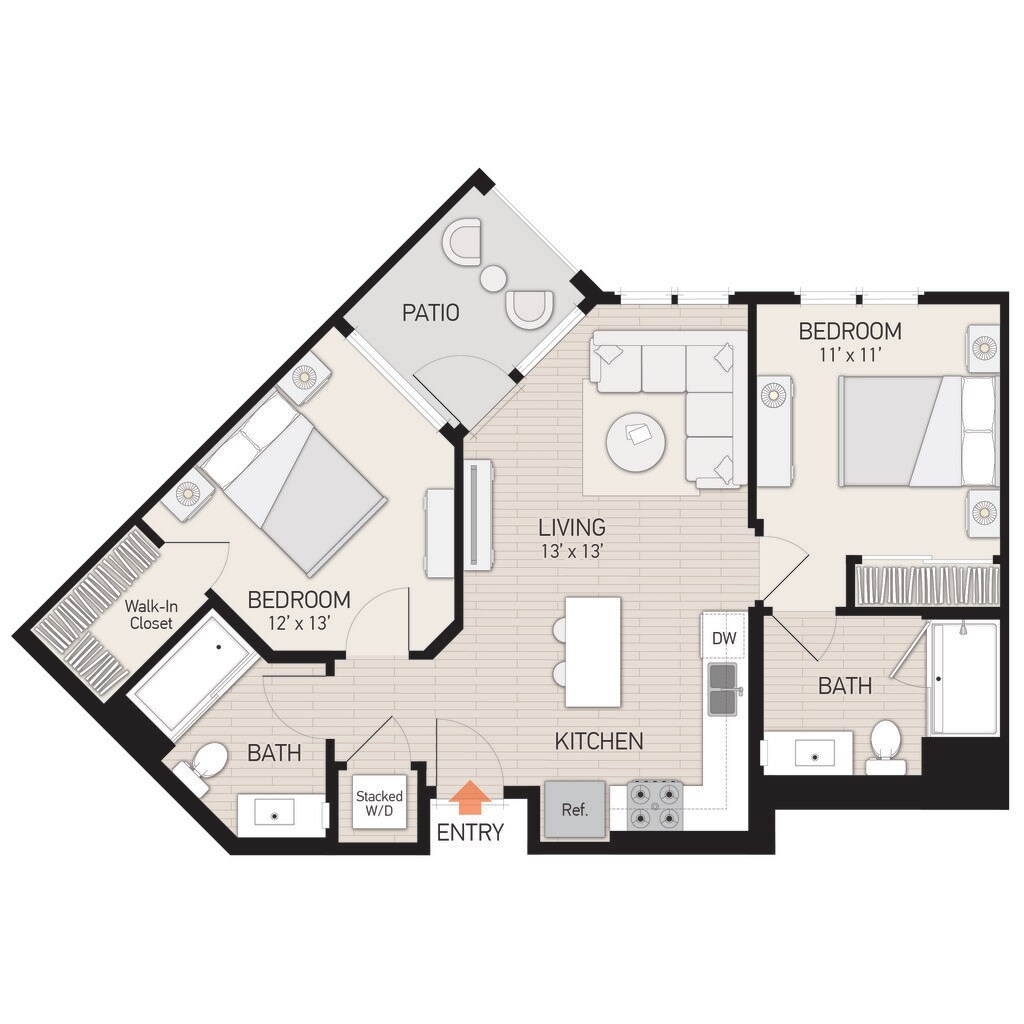 Modelo de apartamento: Plan 29Desde $3,6851 Dormitorio, 1 Baño, 762 sq ftDisponible Ahora![]()