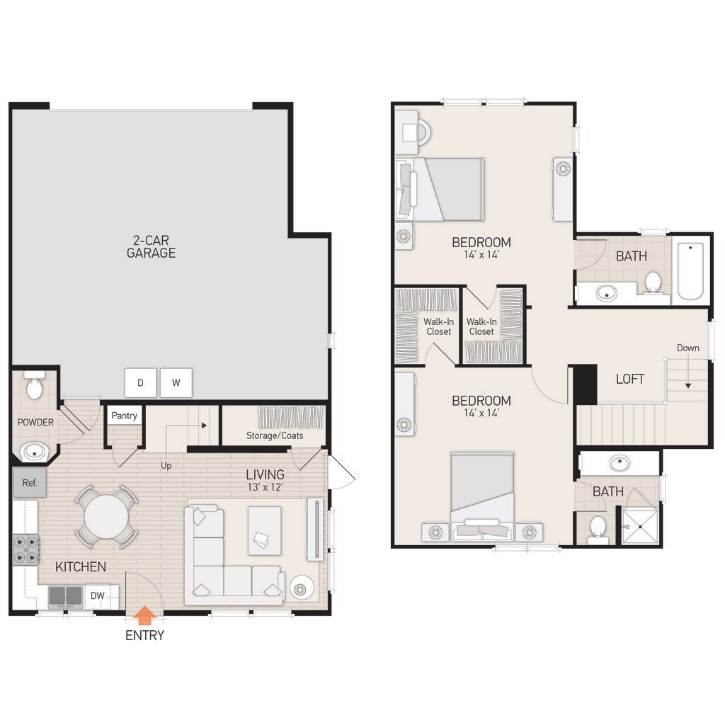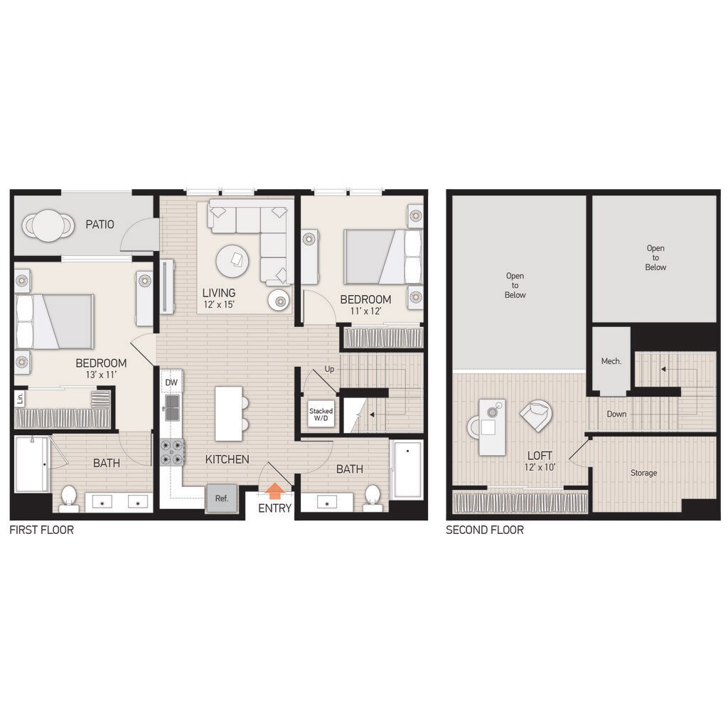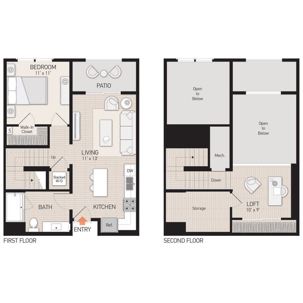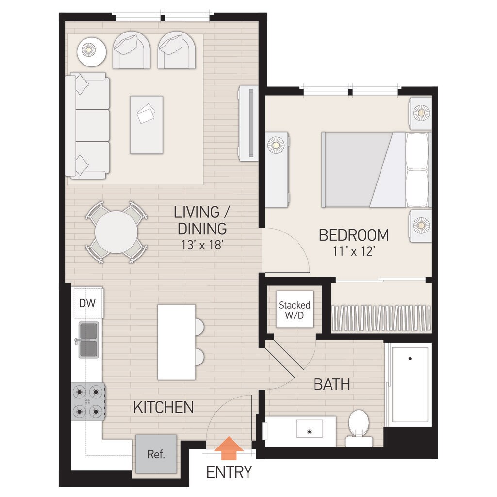 1 Dormitorio, 1 Baño, 718-769 pies²Disponible AhoraGalería del Modelo