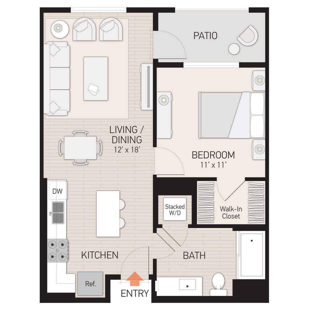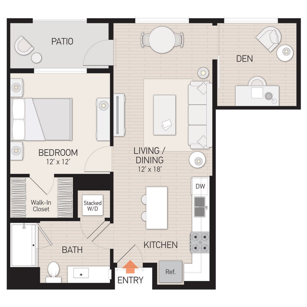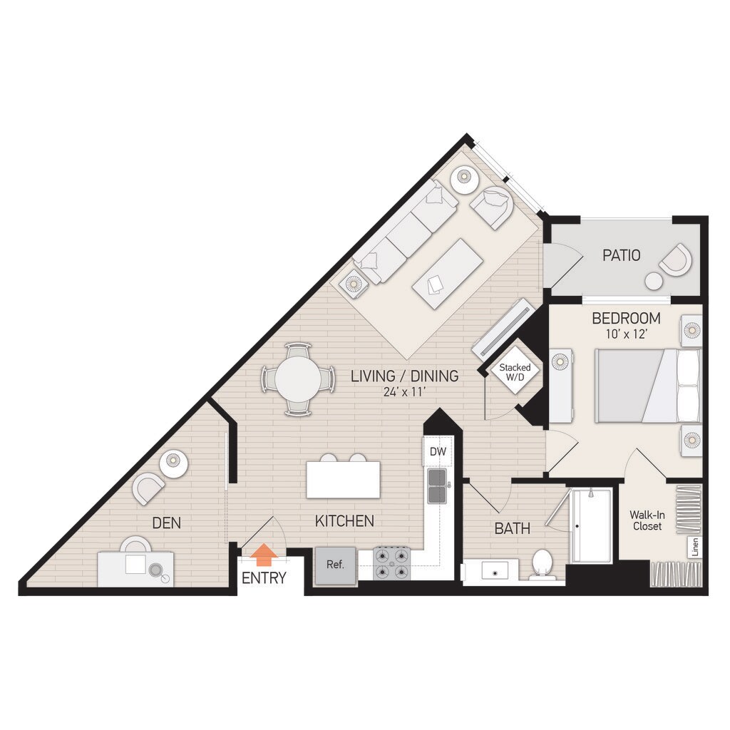 Modelo de apartamento: Plan 25Desde $3,2851 Dormitorio, 1 Baño, 563 sq ftDisponible Ahora![]()