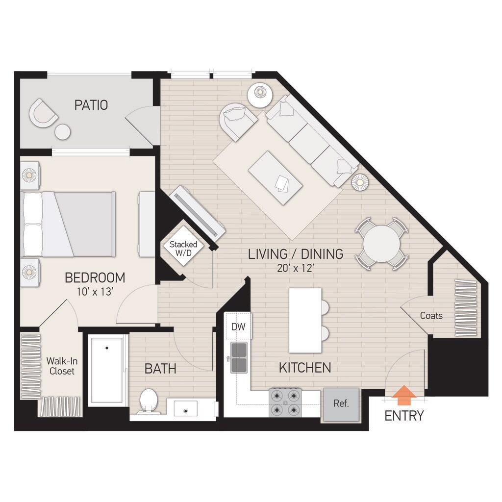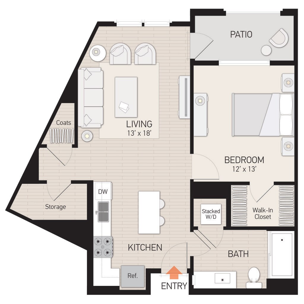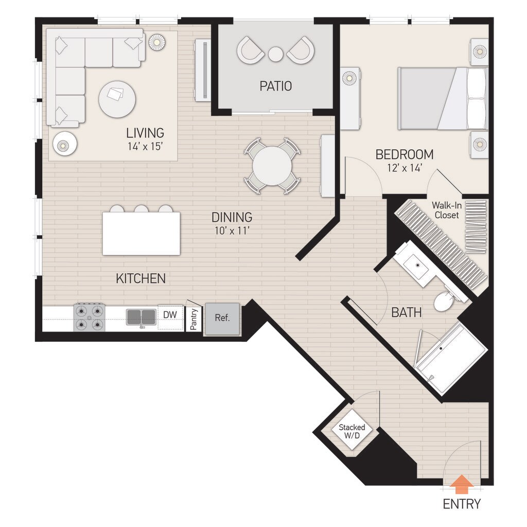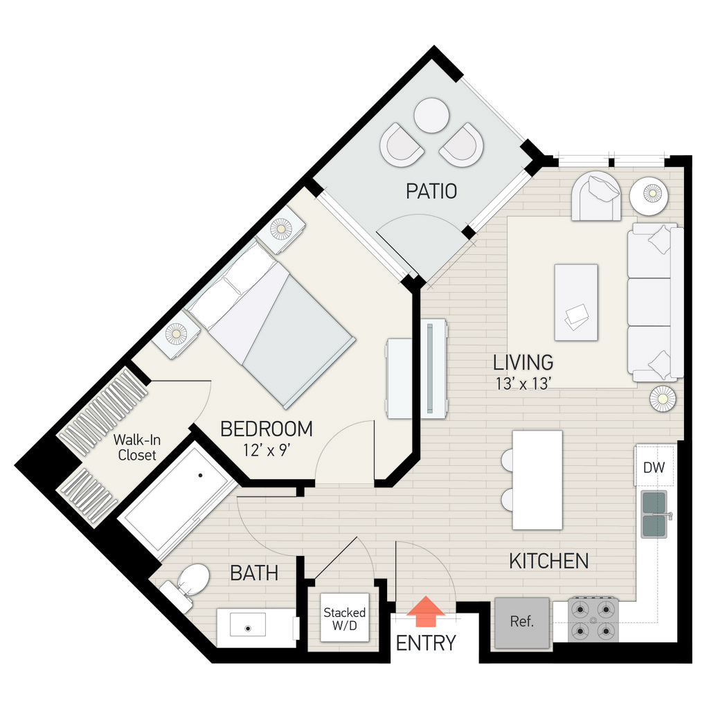 Modelo de apartamento: Plan 25Desde $3,2851 Dormitorio, 1 Baño, 563 sq ftDisponible Ahora![]()