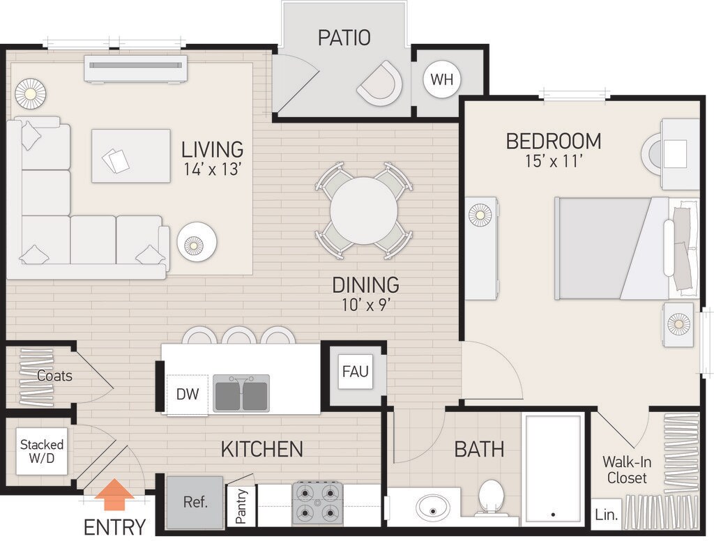 1 Dormitorio, 1 Baño, 762 pies²Disponible AhoraGalería del Modelo