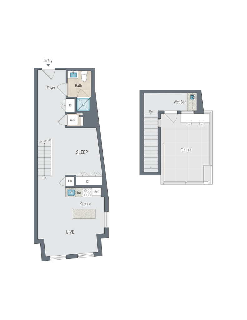 1 Dormitorio, 1 Baño, 735 pies²Disponible AhoraGalería del Modelo