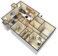 2 Dormitorios, 1 Baño, 840 pies²Precio Mensual TotalDisponible AhoraGalería del Modelo