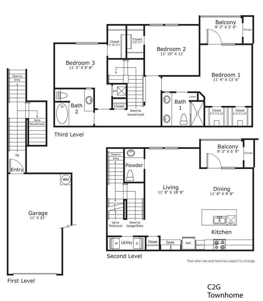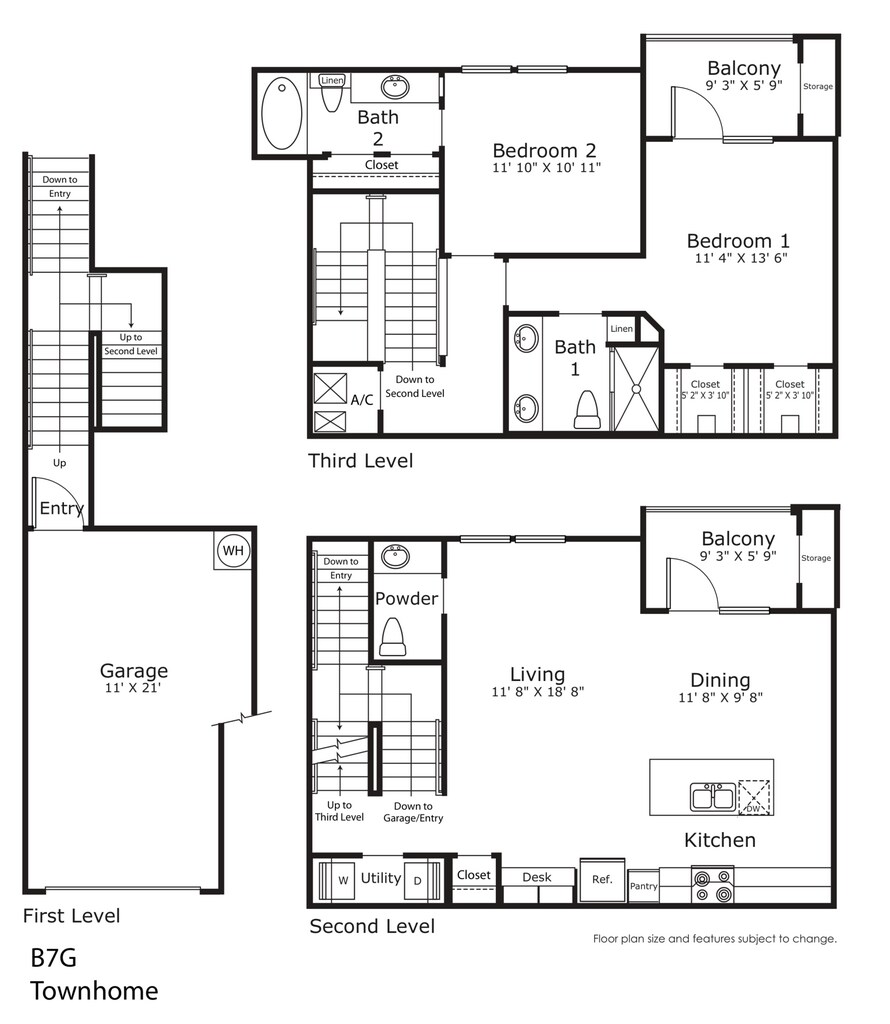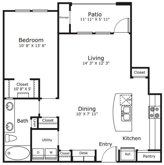 Modelo de apartamento: A11 Dormitorio, 1 Baño, 728 sq ftNo Disponible![]()