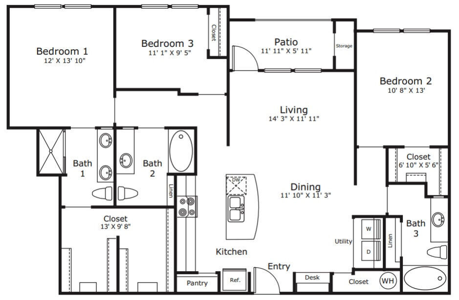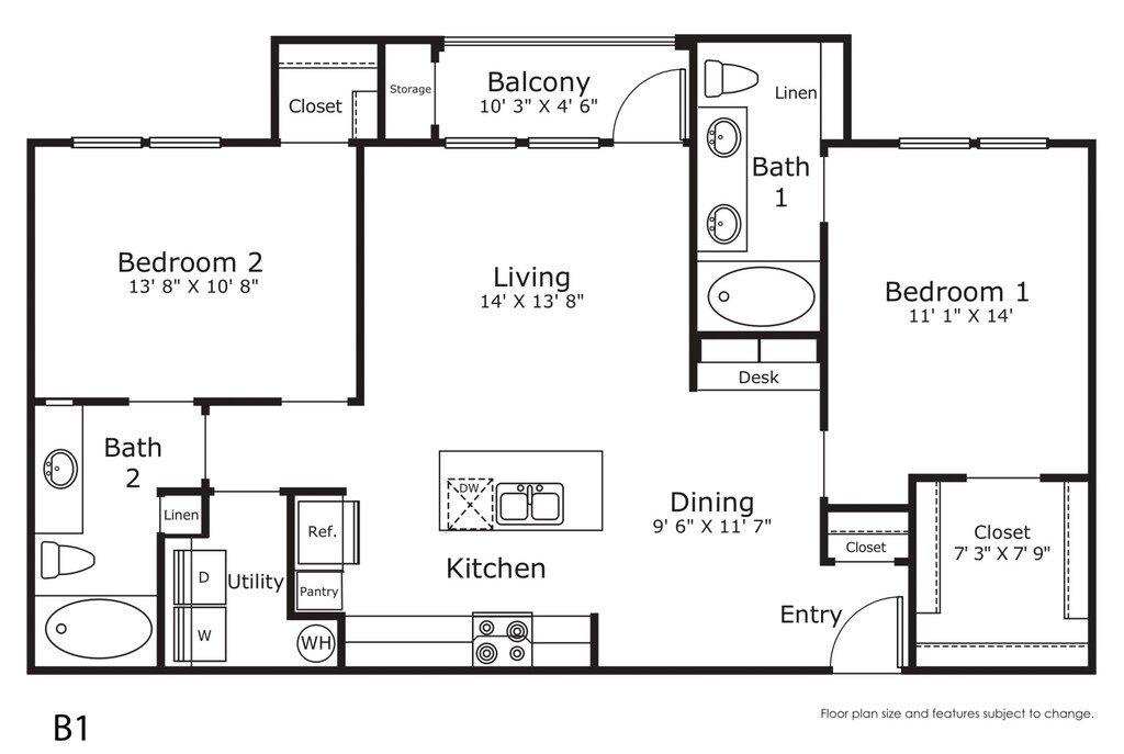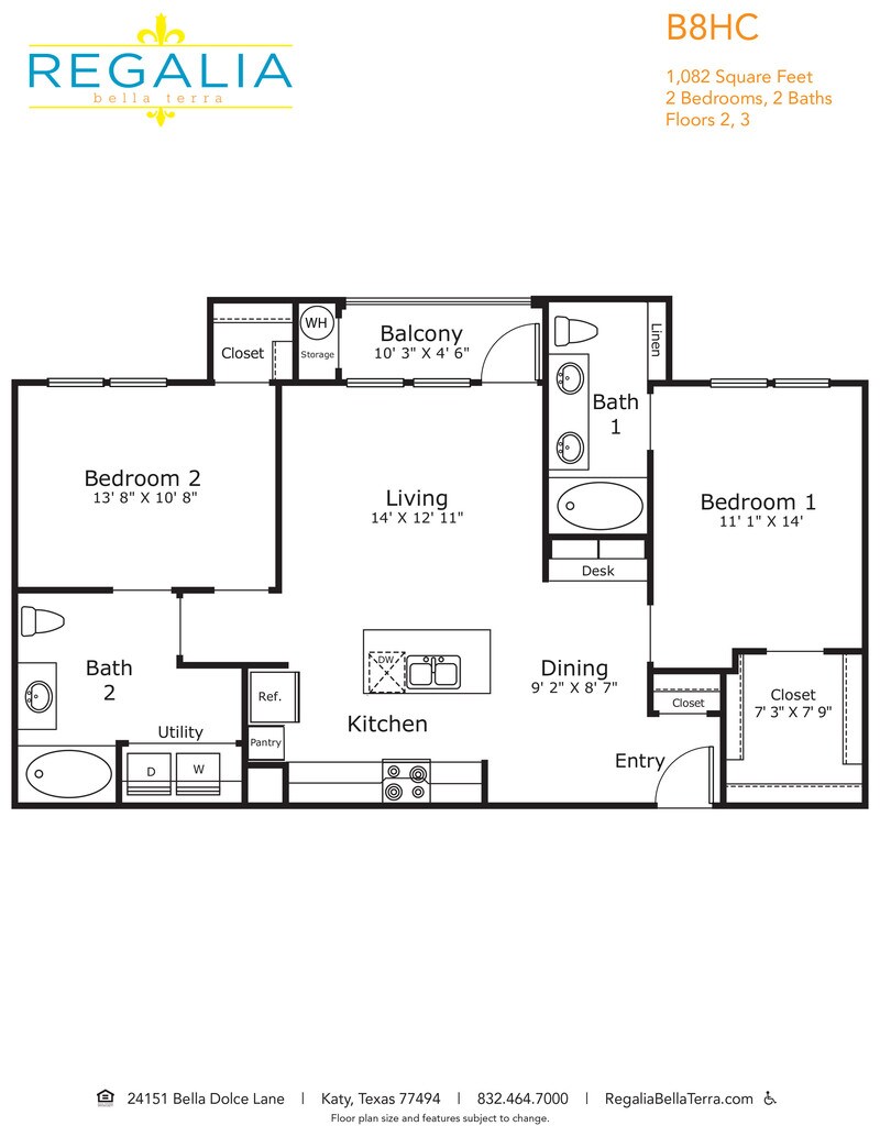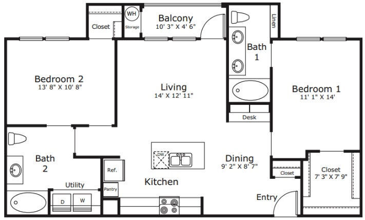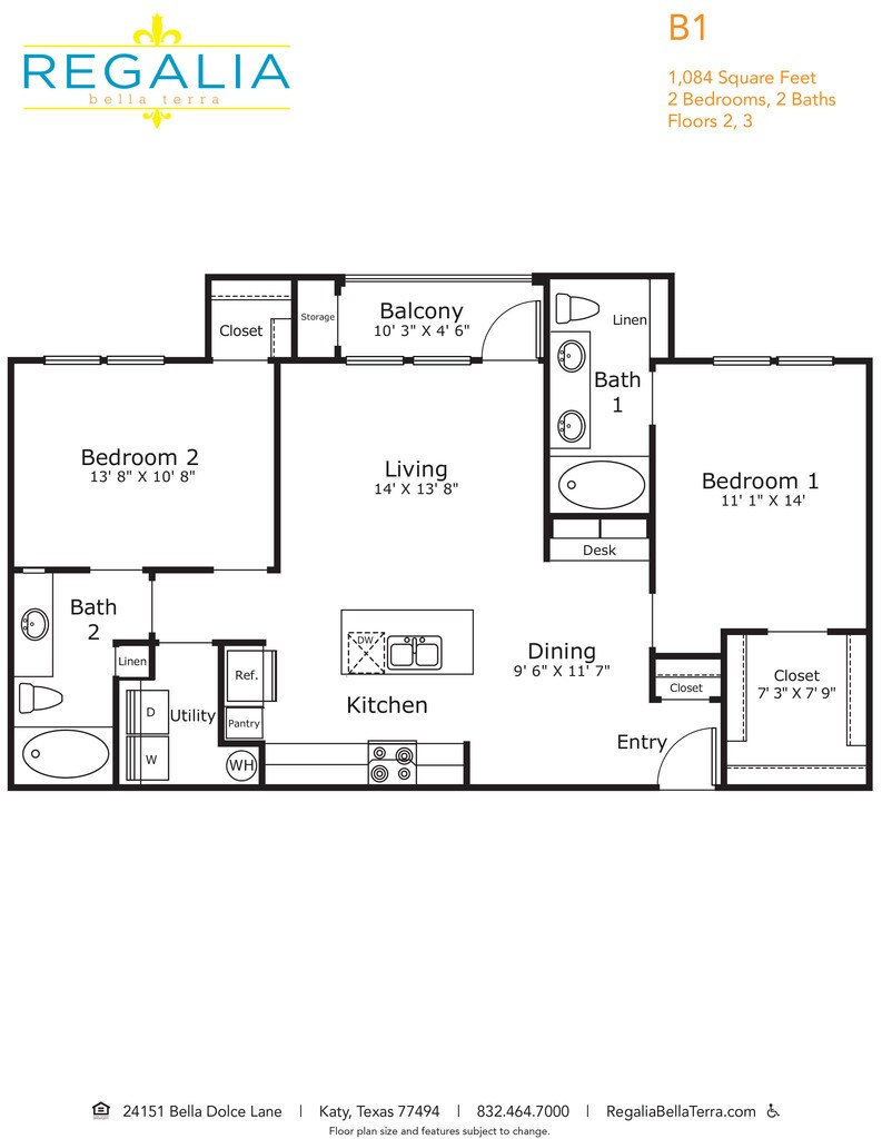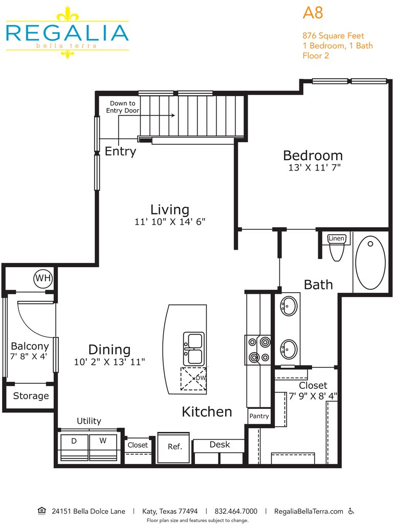 Modelo de apartamento: A81 Dormitorio, 1 Baño, 876 sq ftNo Disponible![]()