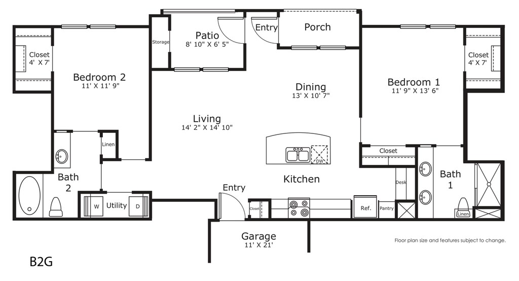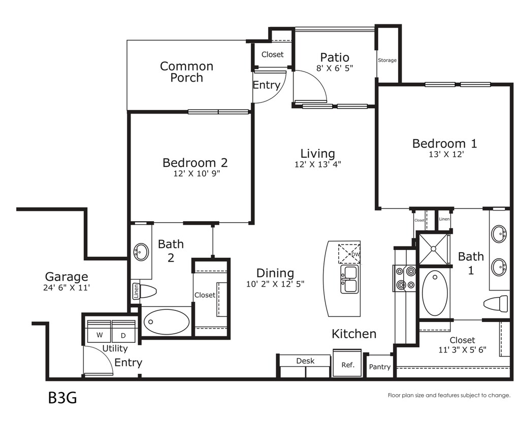 1 Dormitorio, 1 Baño, 823 pies²Galería del Modelo