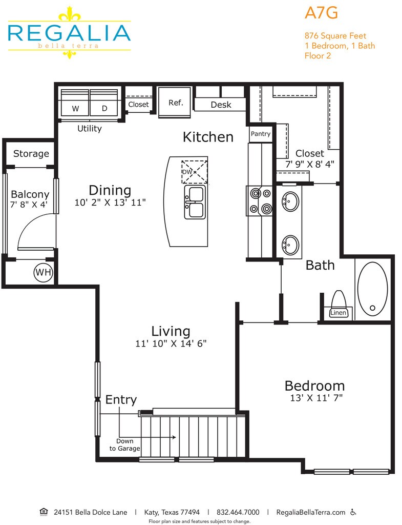 1 Dormitorio, 1 Baño, 876 pies²Galería del Modelo