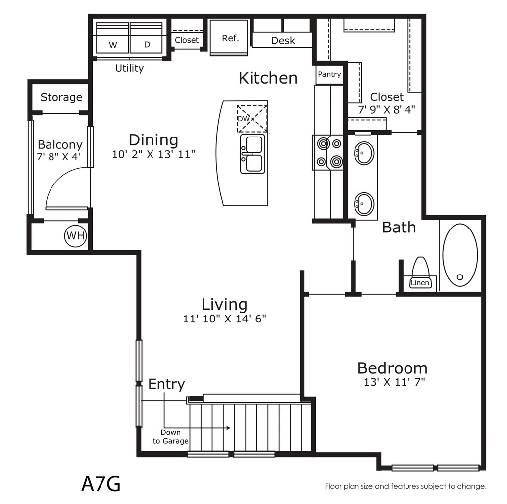 1 Dormitorio, 1 Baño, 728 pies²Galería del Modelo