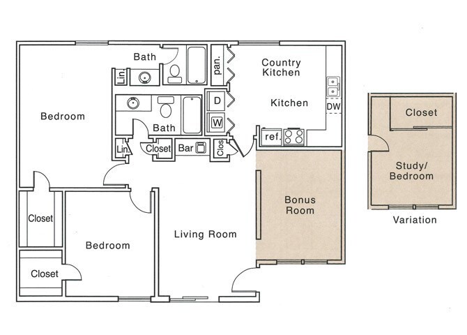 Modelo de apartamento: D1 Dormitorio, 1 Baño, 853 sq ftDisponible Ahora![]()