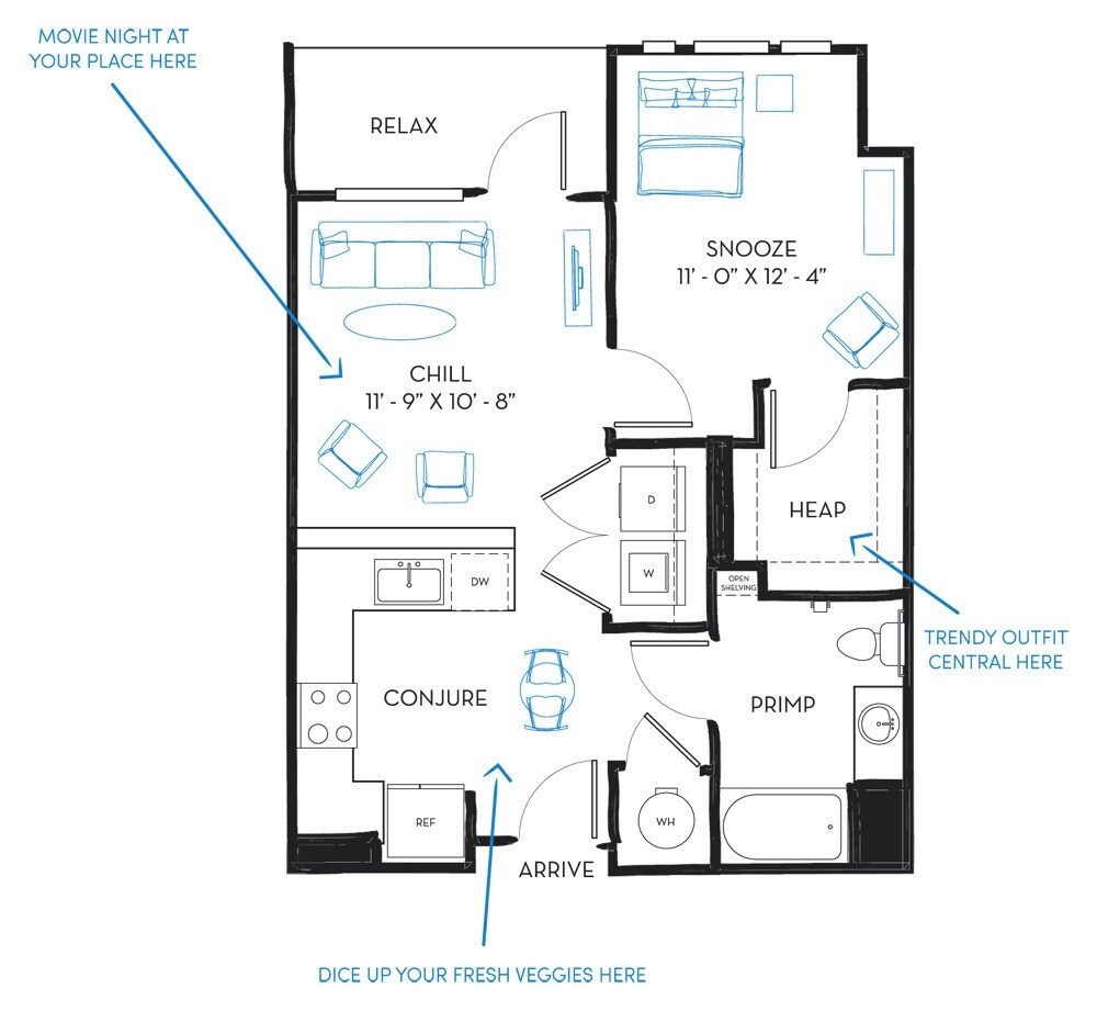 D0X1E - Plano 1 Unidad de apartamento: 420Modelo de apartamento: D0X1E$1,442Estudio, 1 Baño, 587 sq ftDisponible March 3, 2026A0x1C