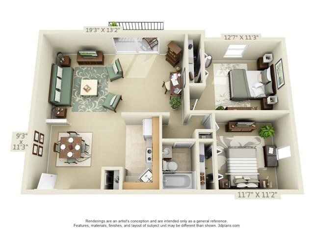 Modelo de apartamento: Two Bedroom DeluxeDesde $1,3402 Dormitorios, 1 Baño, 1130 sq ftNo Disponible![]()