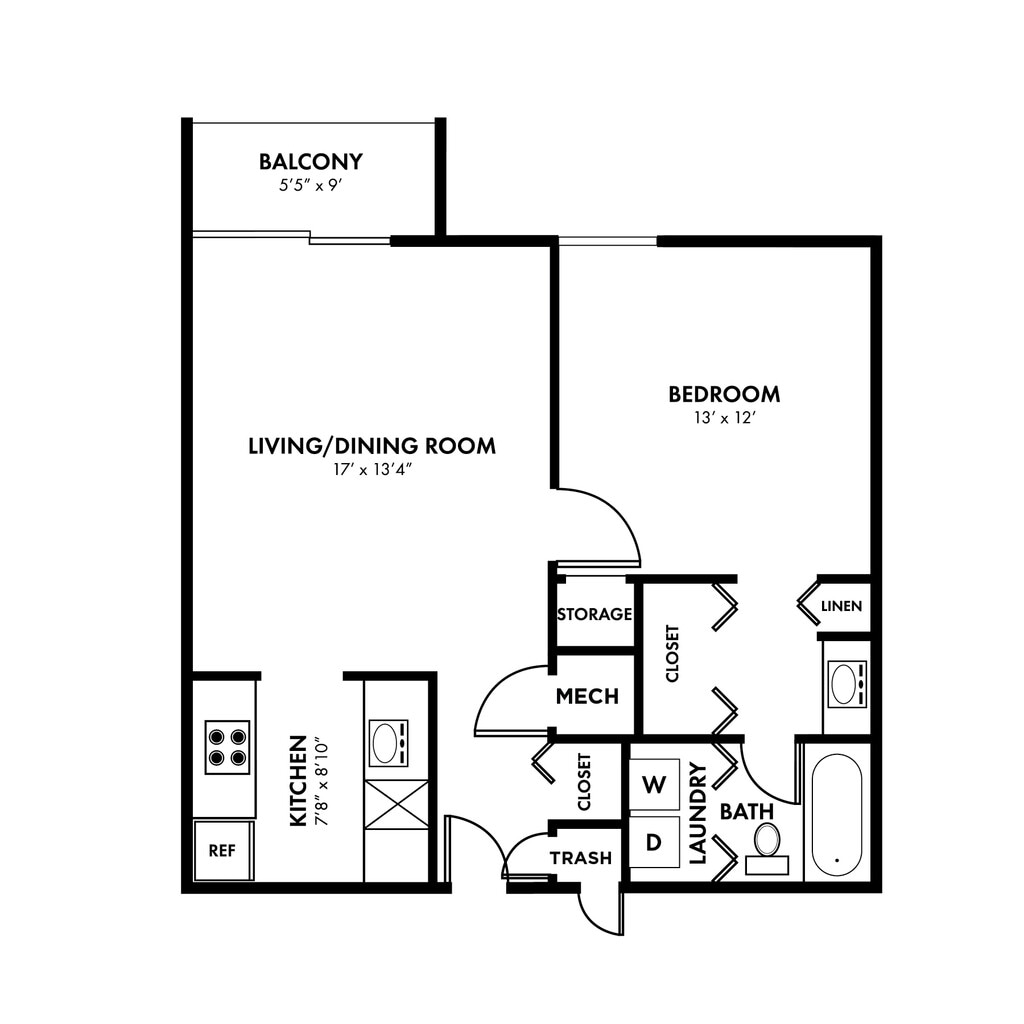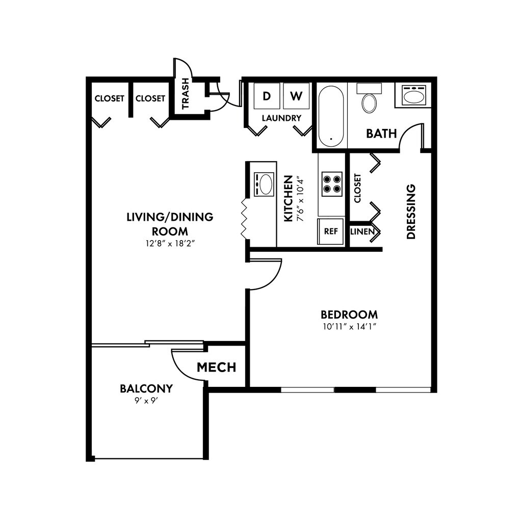 1 Dormitorio, 1 Baño, 815 pies²Disponible AhoraGalería del Modelo