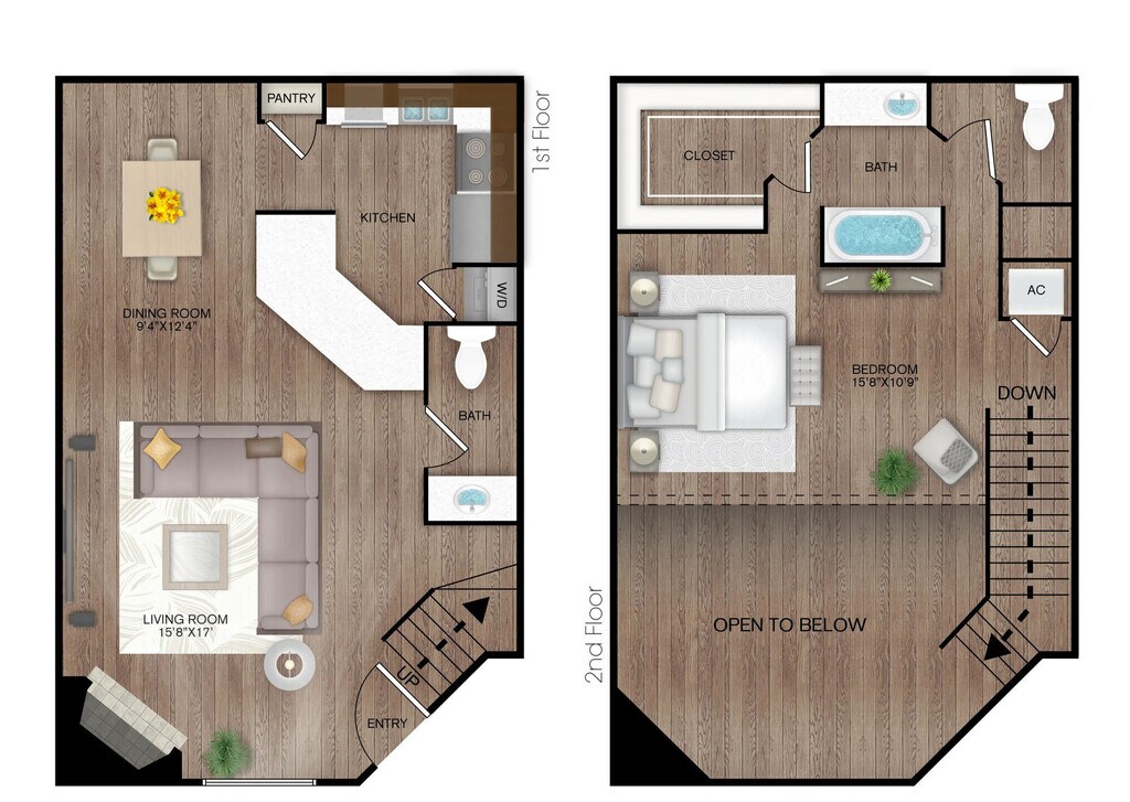 1 Dormitorio, 1 Baño, 738 pies²Disponible AhoraGalería del Modelo