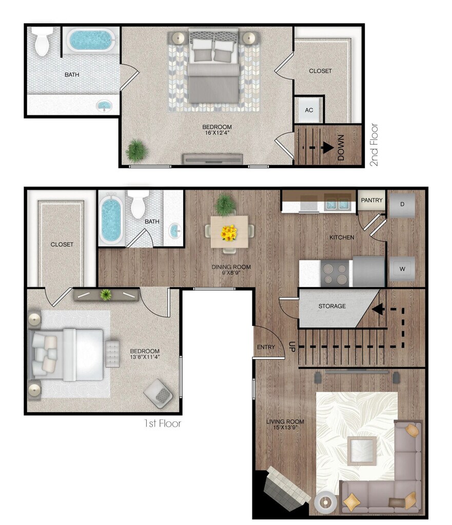 A2C - Plano 1 Los planos de la planta son una interpretación artística. Todas las dimensiones son aproximadas. Los tamaños o el detalle del producto real y sus especificaciones pueden variar. No todas las características están disponibles en todos los hogares para rentar. Los precios y la disponibilidad están sujetos a cambios. El alquiler que se muestra es mensual. Se pueden aplicar ciertos cargos, por ejemplo, entrega de paquetes, recolección de basura, agua, servicios, etc. Depositos varian. Consulta a un representante para conocer detalles.