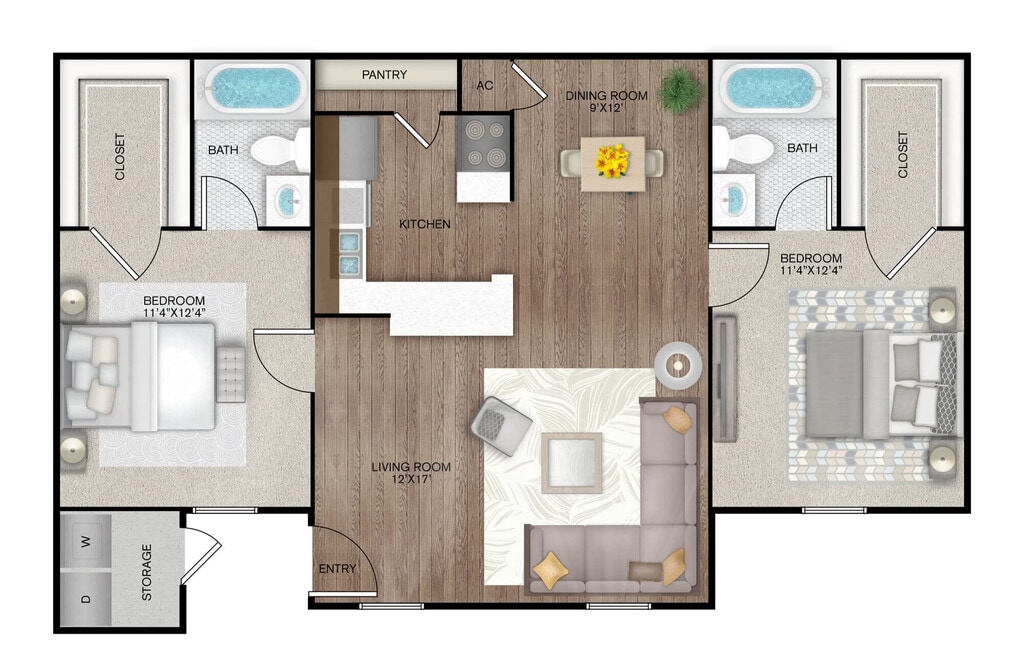 Modelo de apartamento: A2CDesde $9171 Dormitorio, 1 Baño, 738 sq ftDisponible AhoraLos planos de la planta son una interpretación artística. Todas las dimensiones son aproximadas. Los tamaños o el detalle del producto real y sus especificaciones pueden variar. No todas las características están disponibles en todos los hogares para rentar. Los precios y la disponibilidad están sujetos a cambios. El alquiler que se muestra es mensual. Se pueden aplicar ciertos cargos, por ejemplo, entrega de paquetes, recolección de basura, agua, servicios, etc. Depositos varian. Consulta a un representante para conocer detalles.