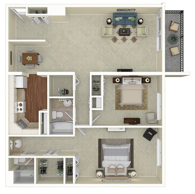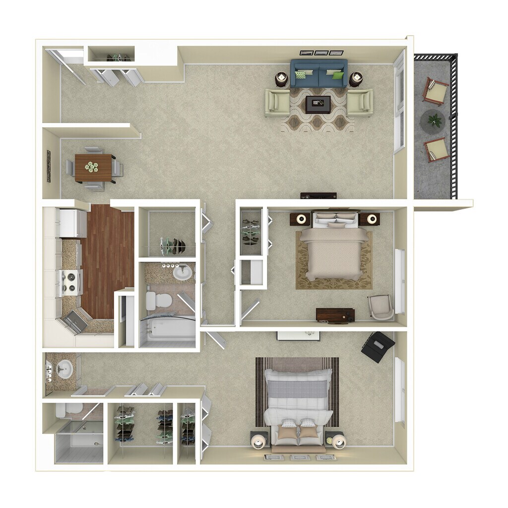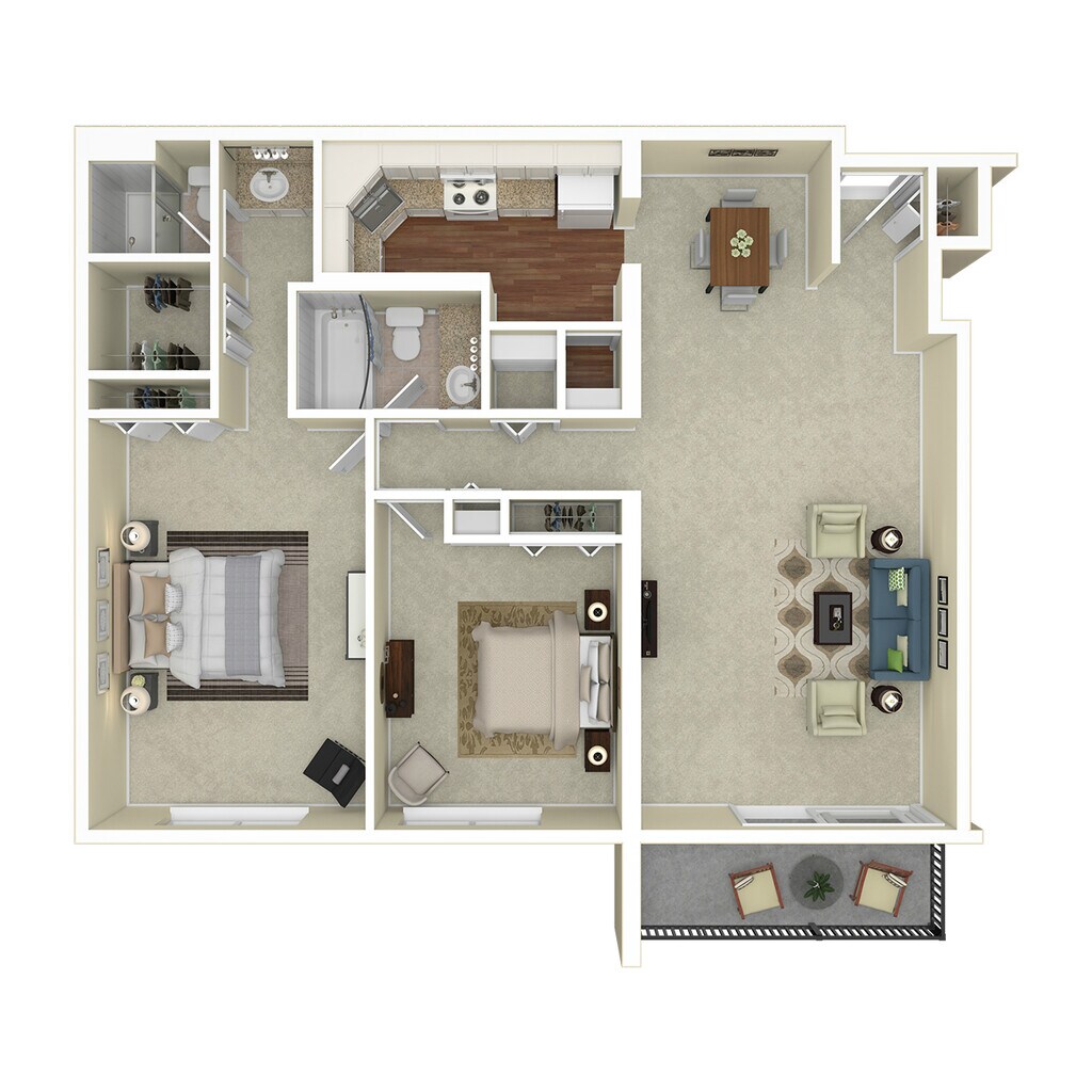 Modelo de apartamento: 1CDesde $1,1251 Dormitorio, 1 Baño, 822 sq ftDisponible Ahora![]()