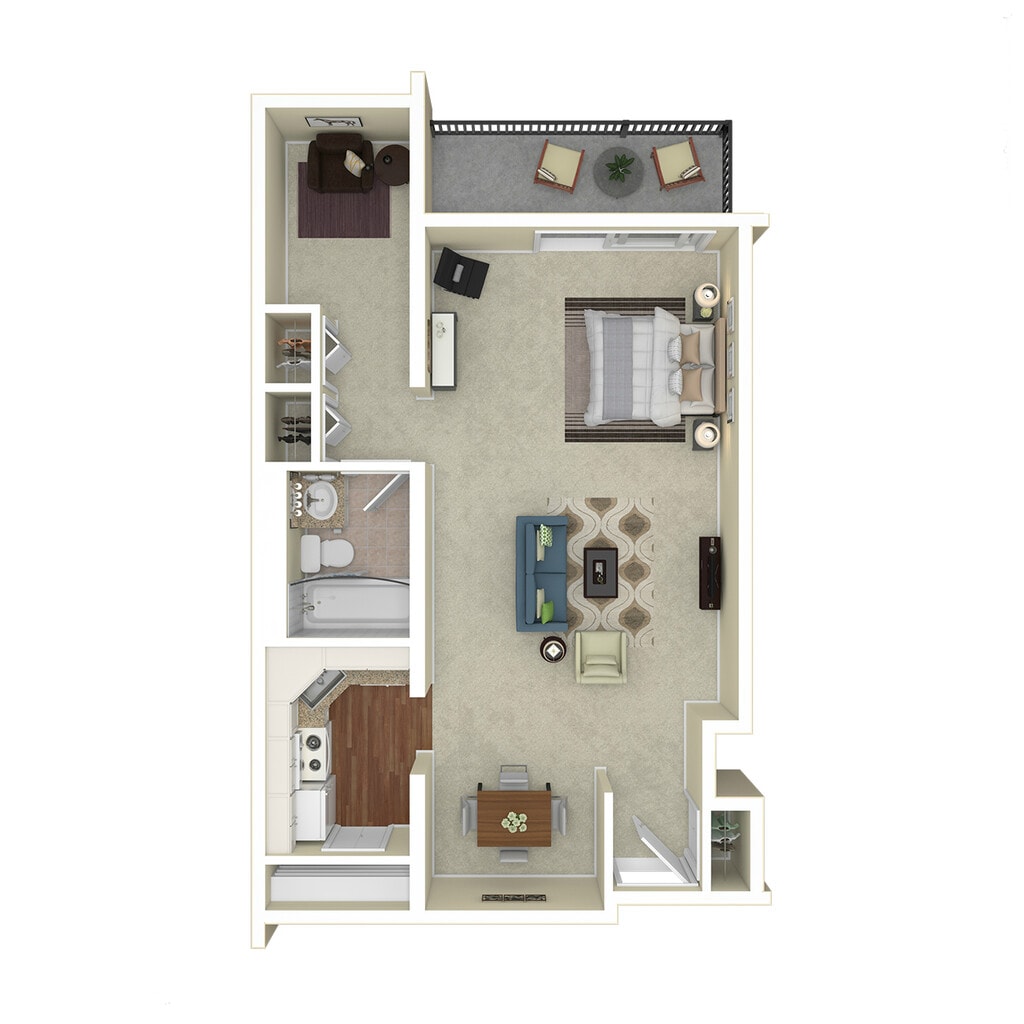 1 Dormitorio, 1 Baño, 711 pies²Disponible AhoraGalería del Modelo