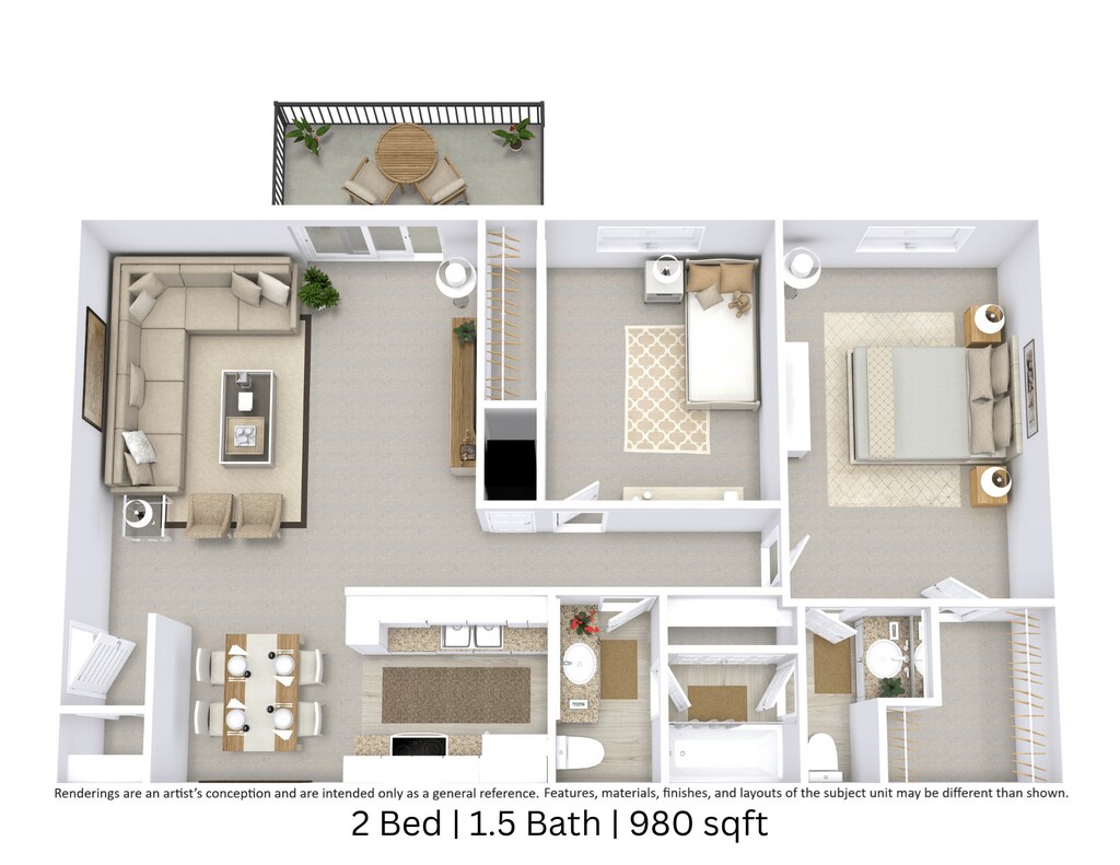 1 Dormitorio, 1 Baño, 650 pies²Disponible AhoraGalería del Modelo