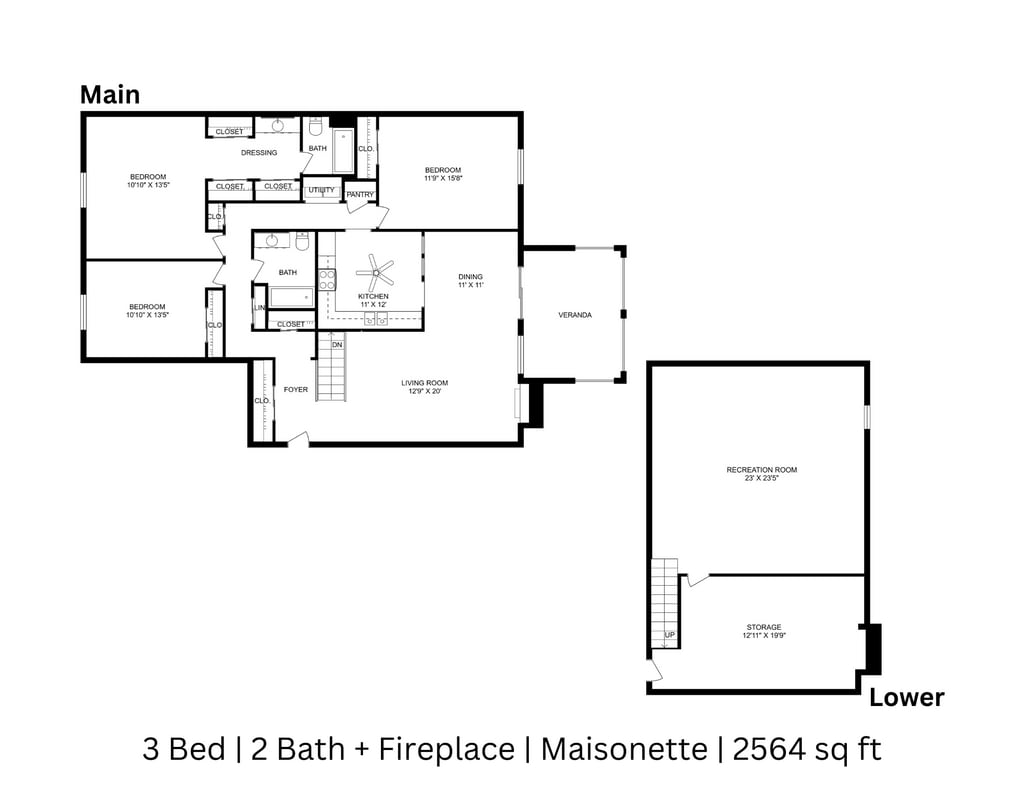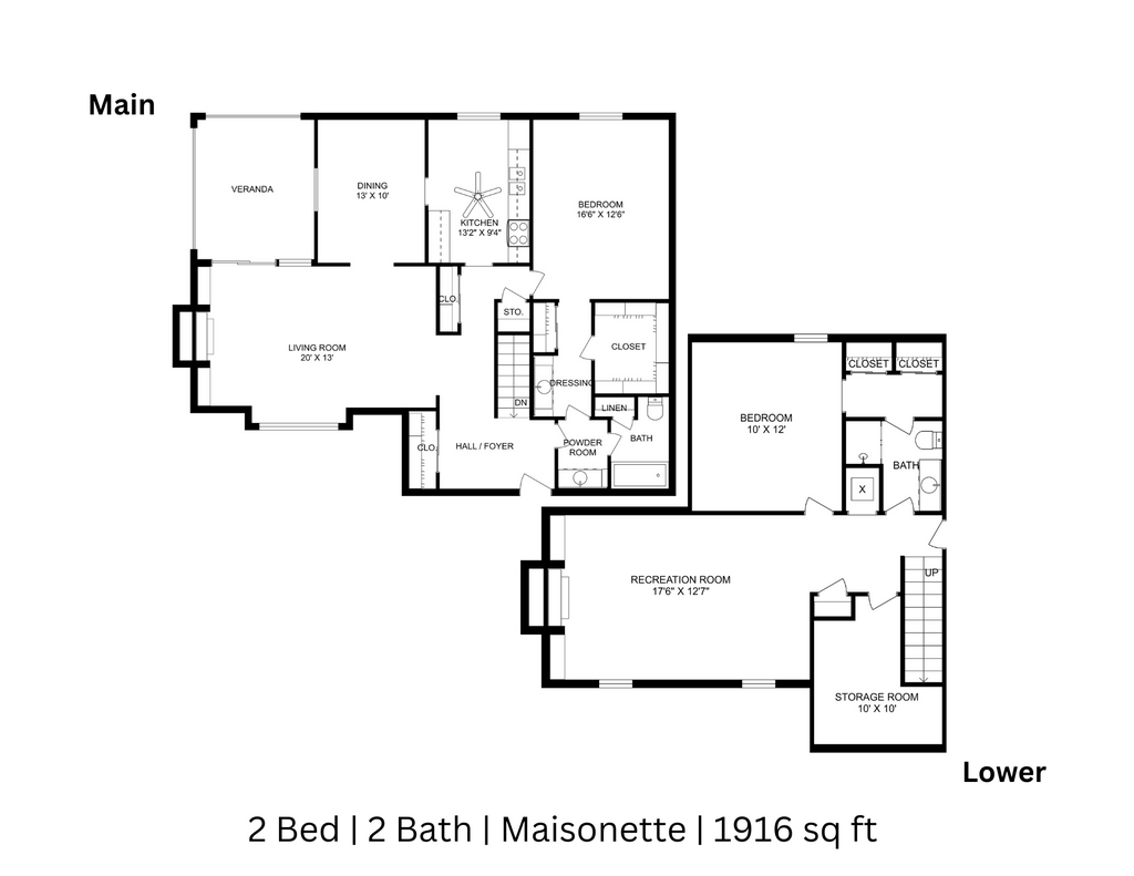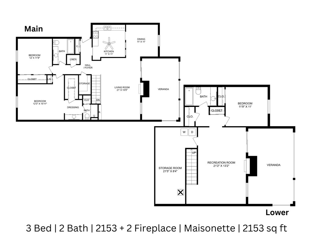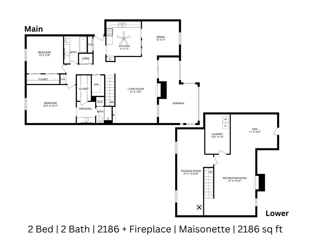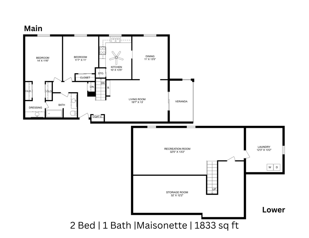 1 Bed | 1 Bath + Fireplace | 1222 sq ft - Plano 2 1 Bed | 1 Bath |Maisonette | 1395 sq ft