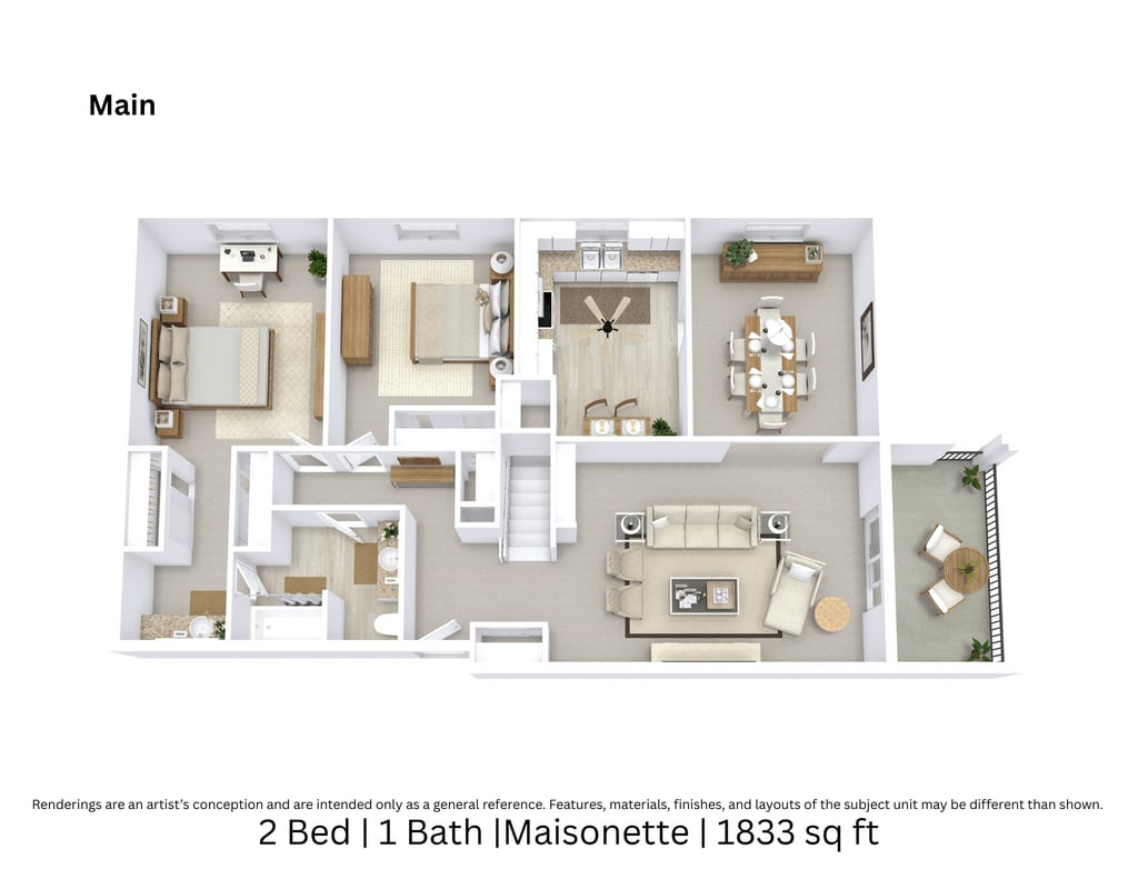 1 Bed | 1 Bath |Maisonette | 1395 sq ft - Plano 2 ![]()